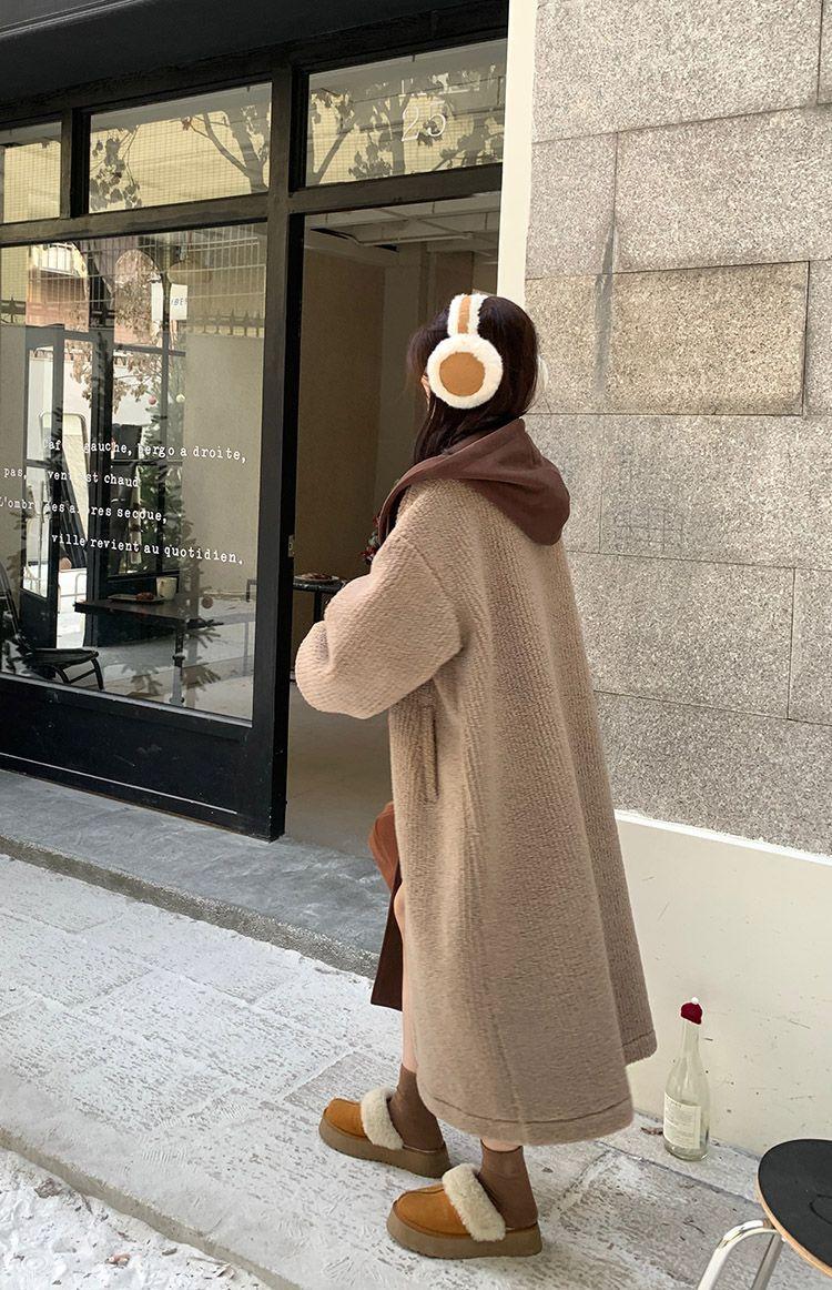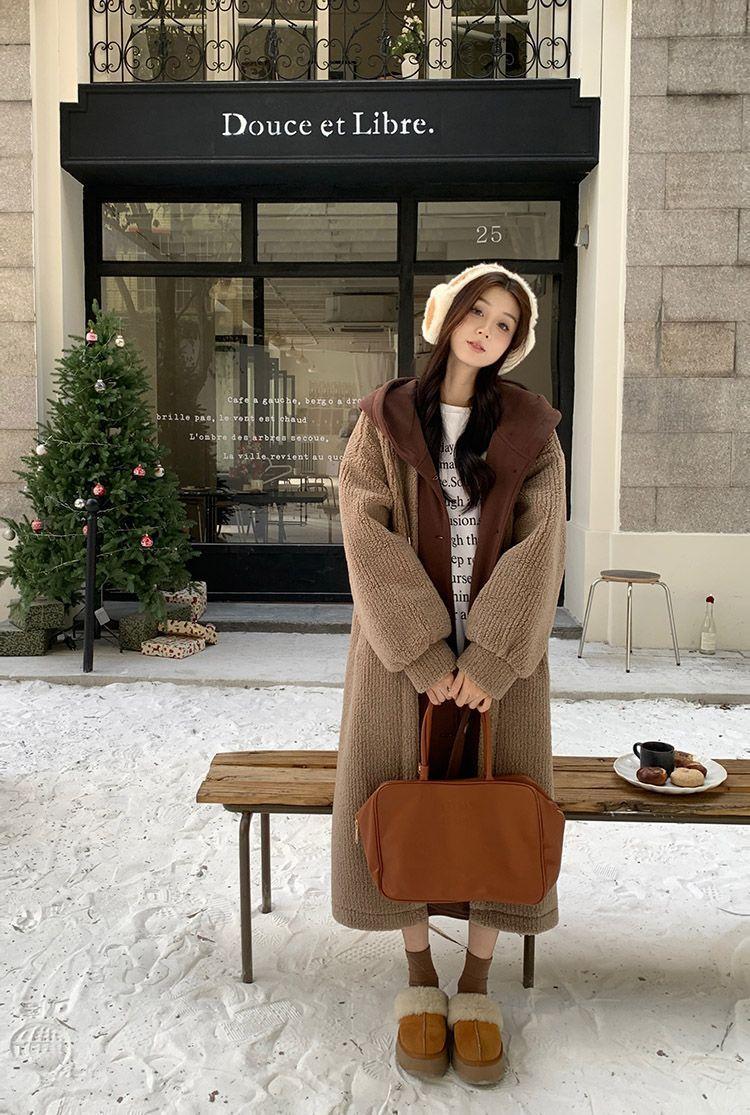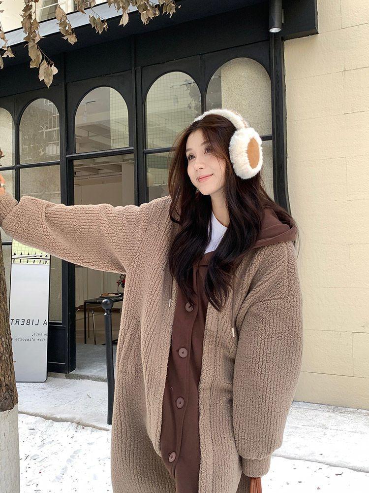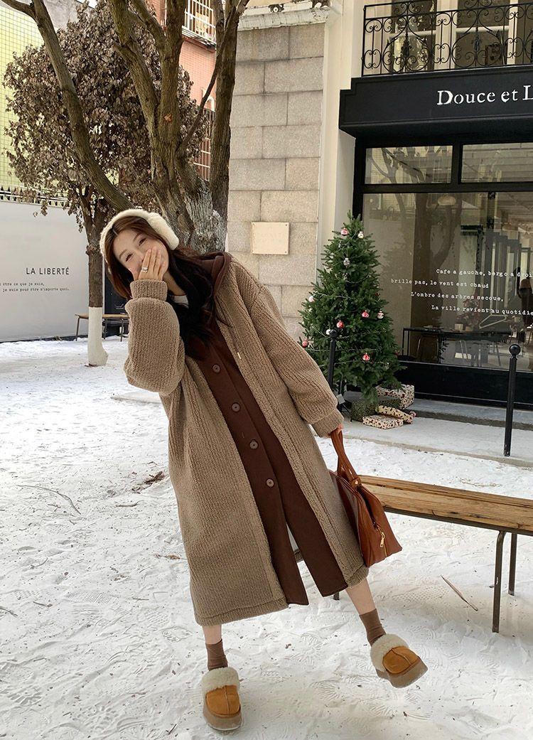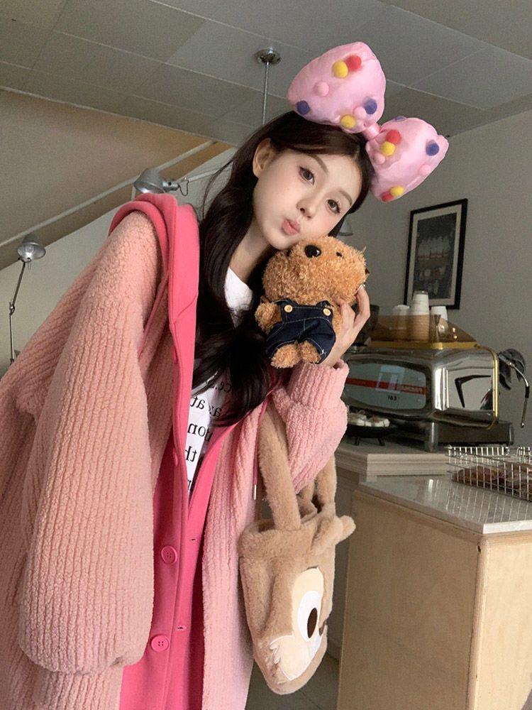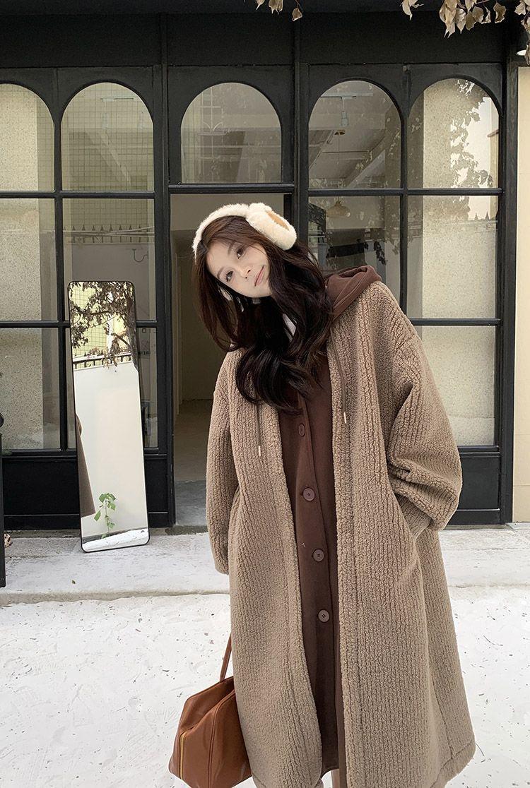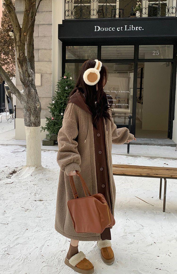 Abrigo Rosa de Dos Piezas Falso con Capucha y Costuras Invierno Estilo Coreano 2025 Nuevo Diseño Sensación Forrado de Polar Abrigo Grueso