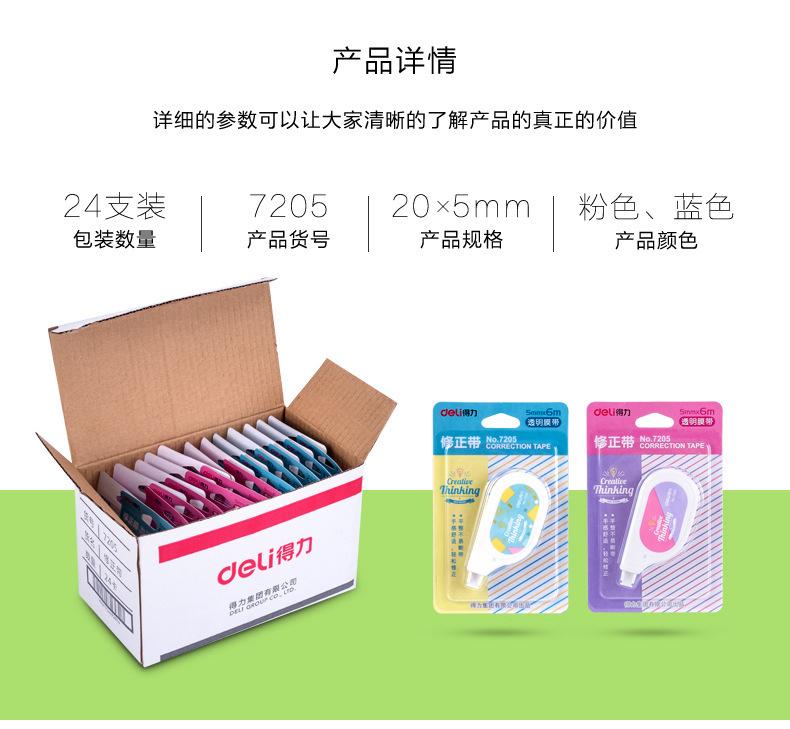 Cinta correctora Deli 7205, cinta correctora para estudiantes, cinta correctora de 5 mm de ancho, cinta correctora transparente de 6 m, cinta correctora al por mayor