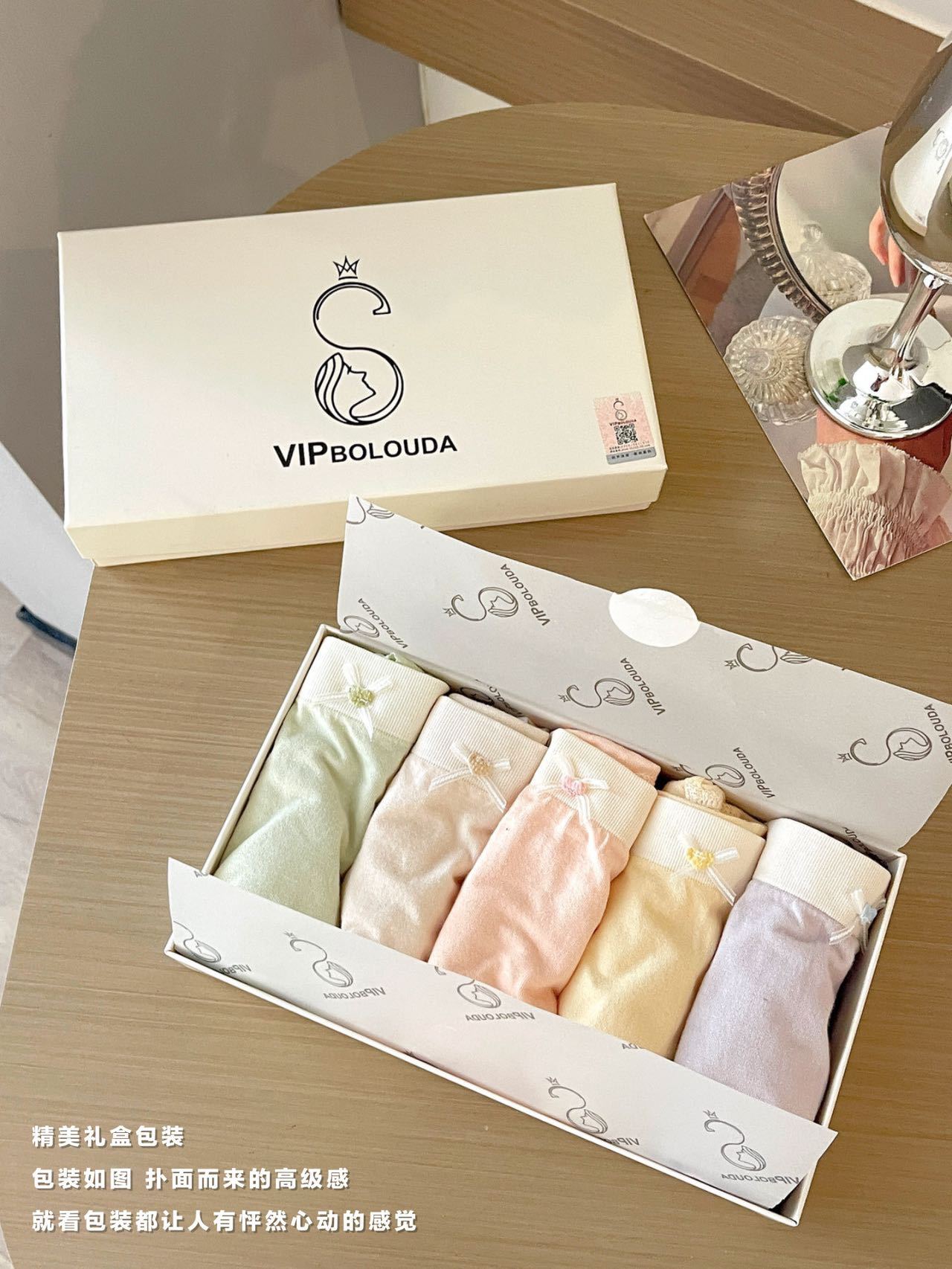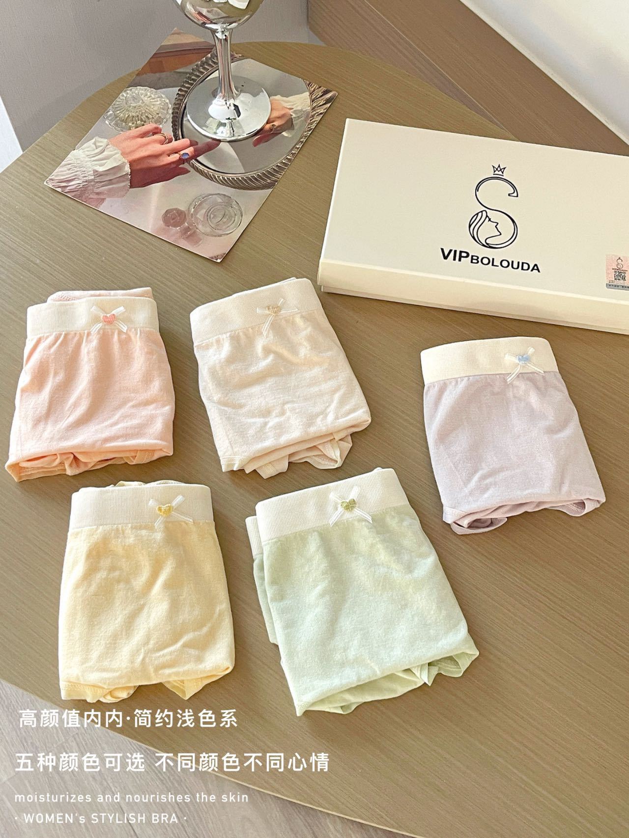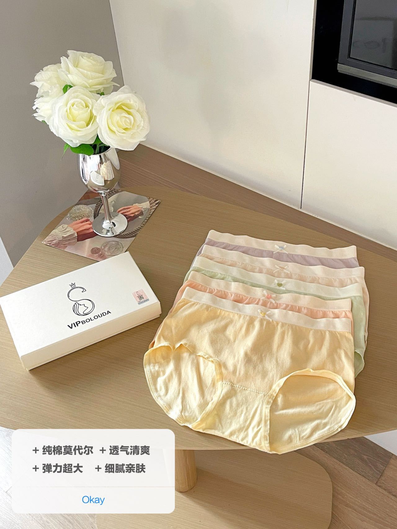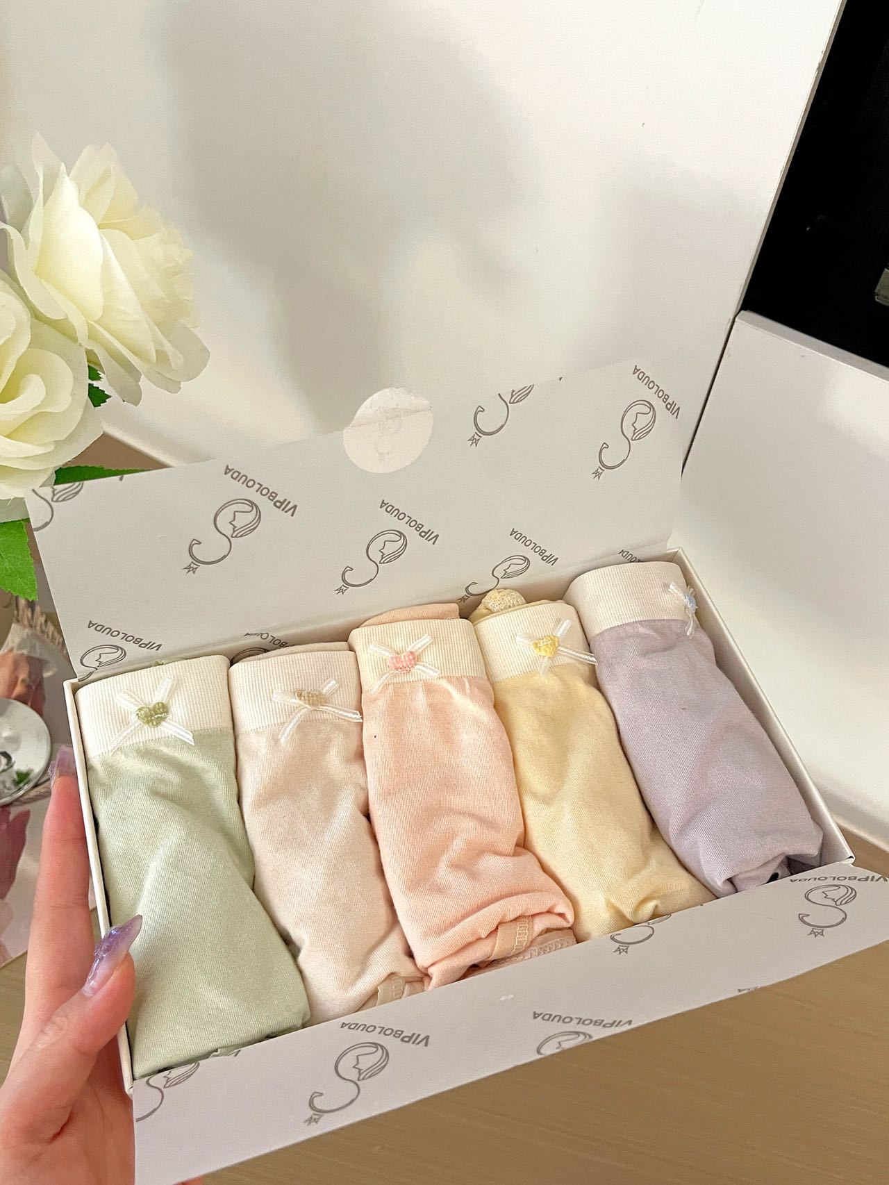 Nueva ropa interior de mujer modal de algodón puro, sin costuras, antibacteriana, de cintura media, transpirable, en caja de regalo de 5 piezas.