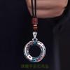Colgante artesanal de esmalte con hebilla Ping An, accesorios sólidos retro, collar antiguo, colgante de fénix con método antiguo azul quemado para hombres y mujeres