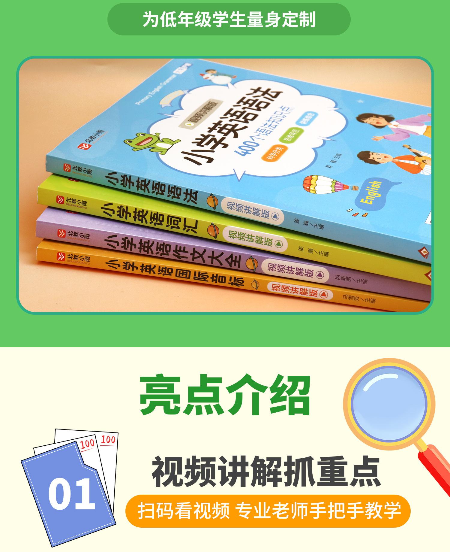 Los 4 volúmenes de vocabulario inglés, gramática inglesa, composición en inglés, símbolos fonéticos internacionales en inglés, formación especial para escuelas primarias