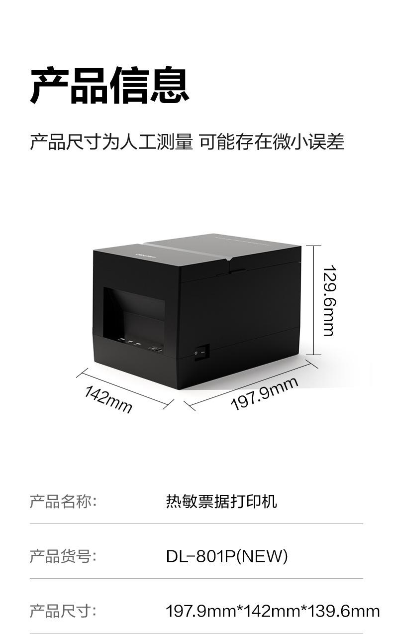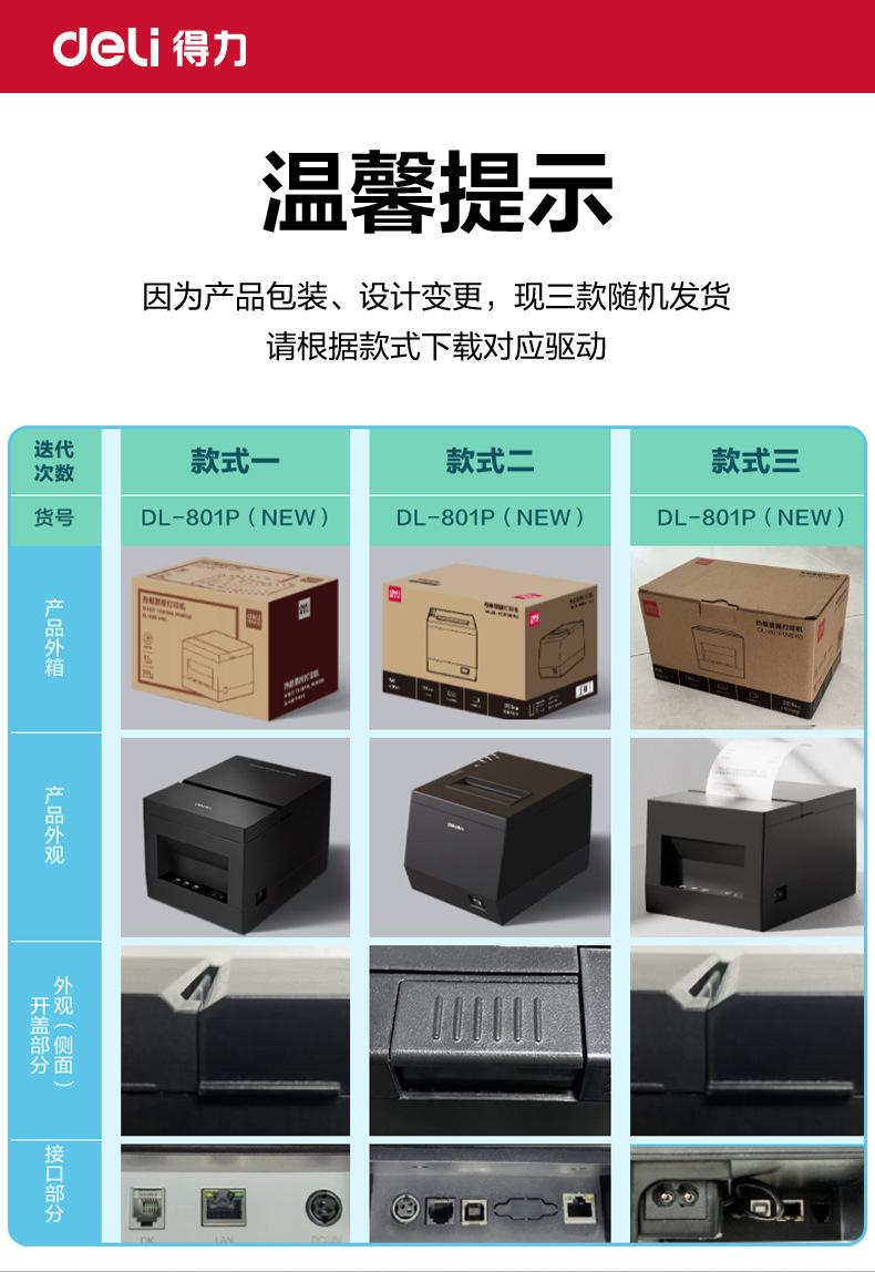 Deli Dl-801Pnew Impresora Térmica de Recibos Corte Automático de Papel Cajero Para Llevar Impresora de Alta Velocidad para Cocina