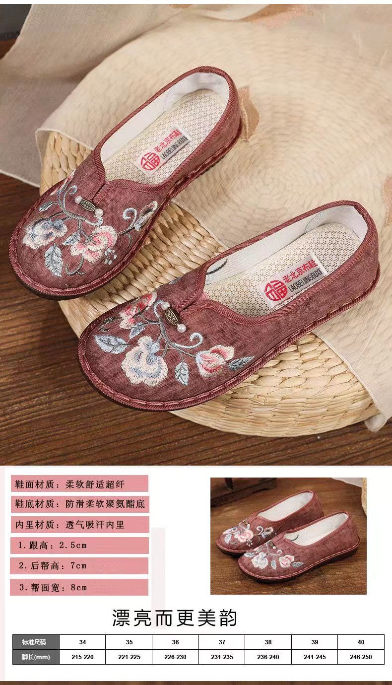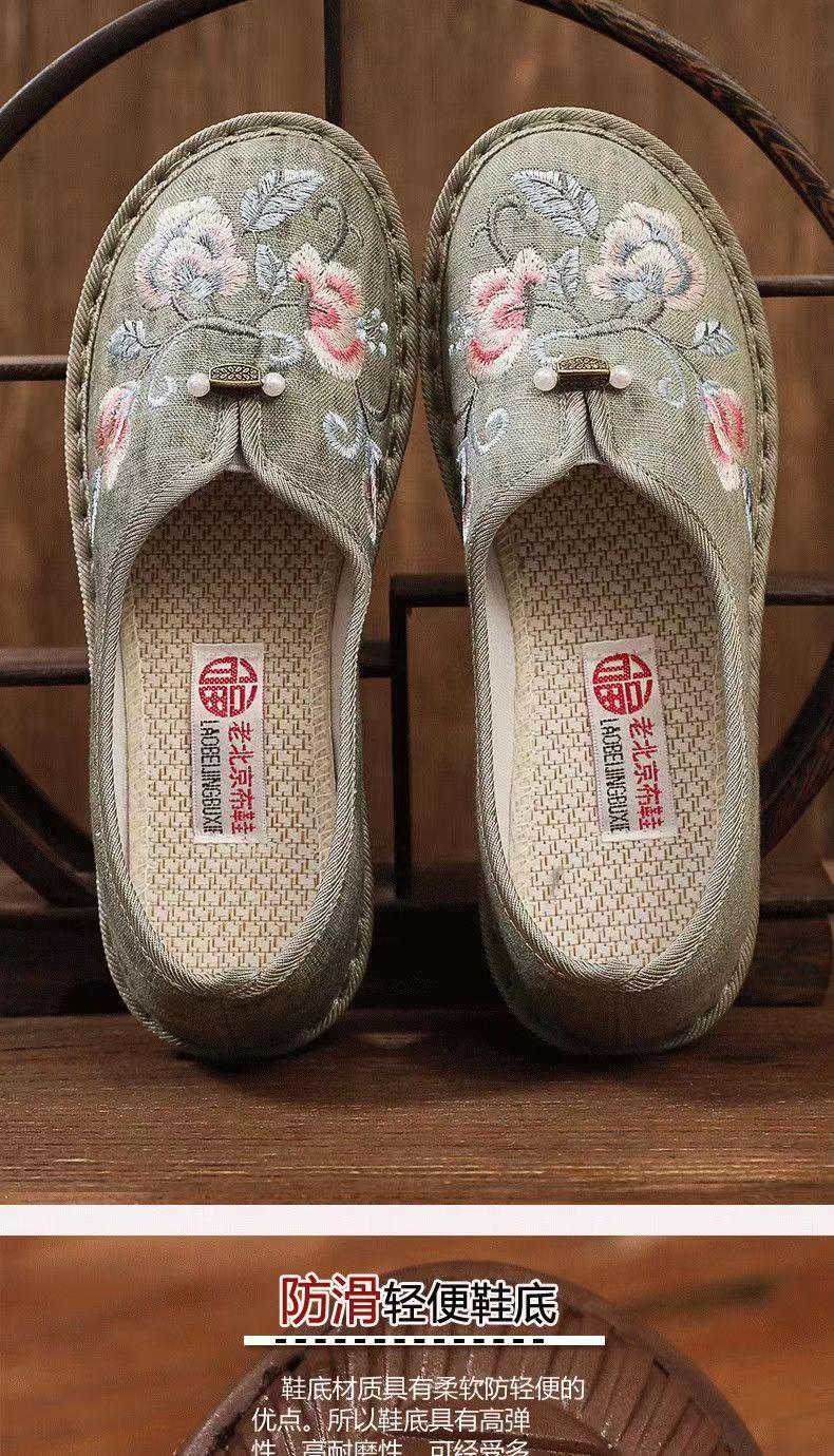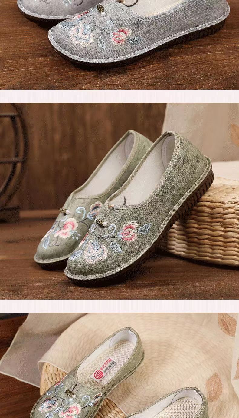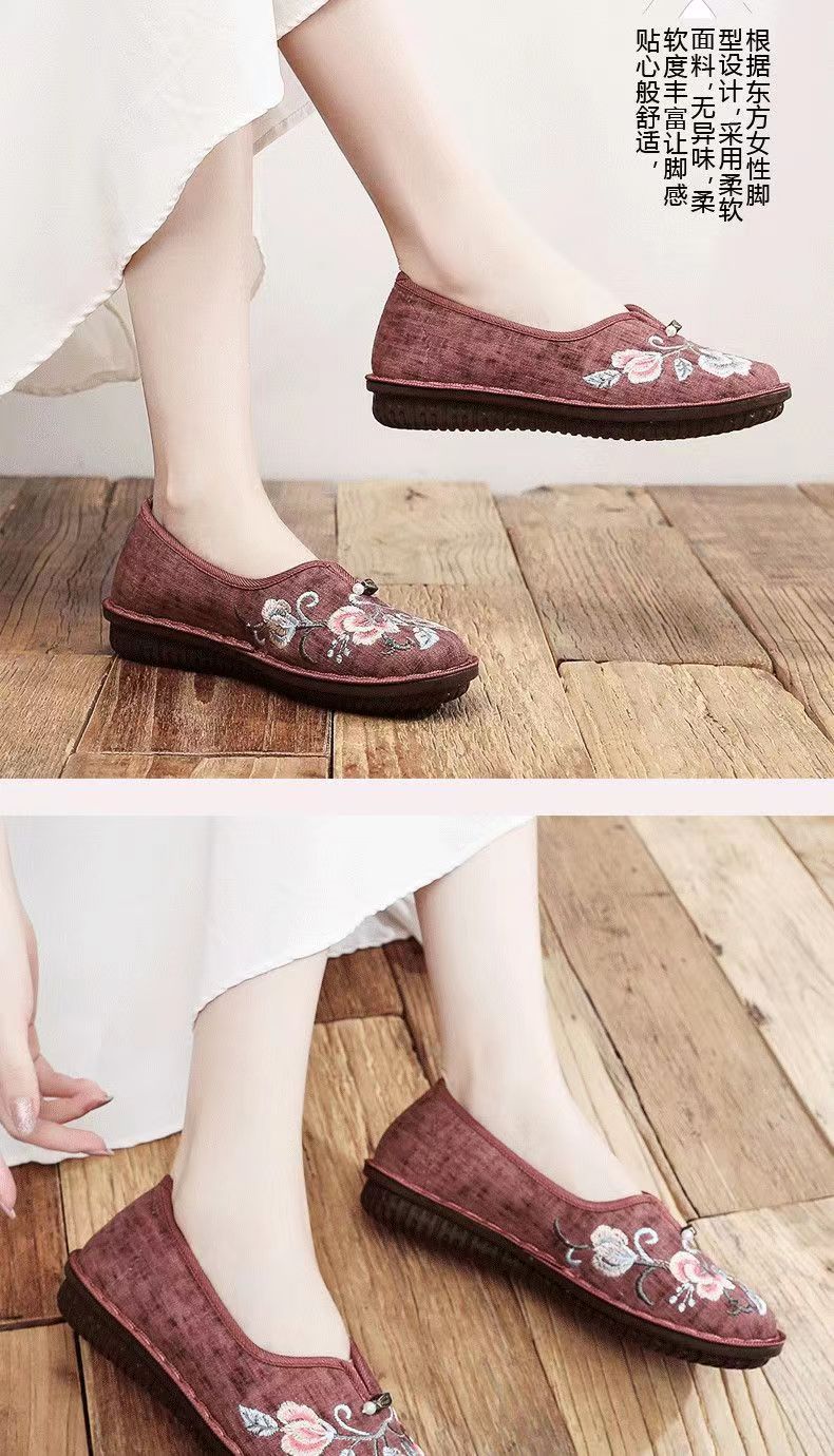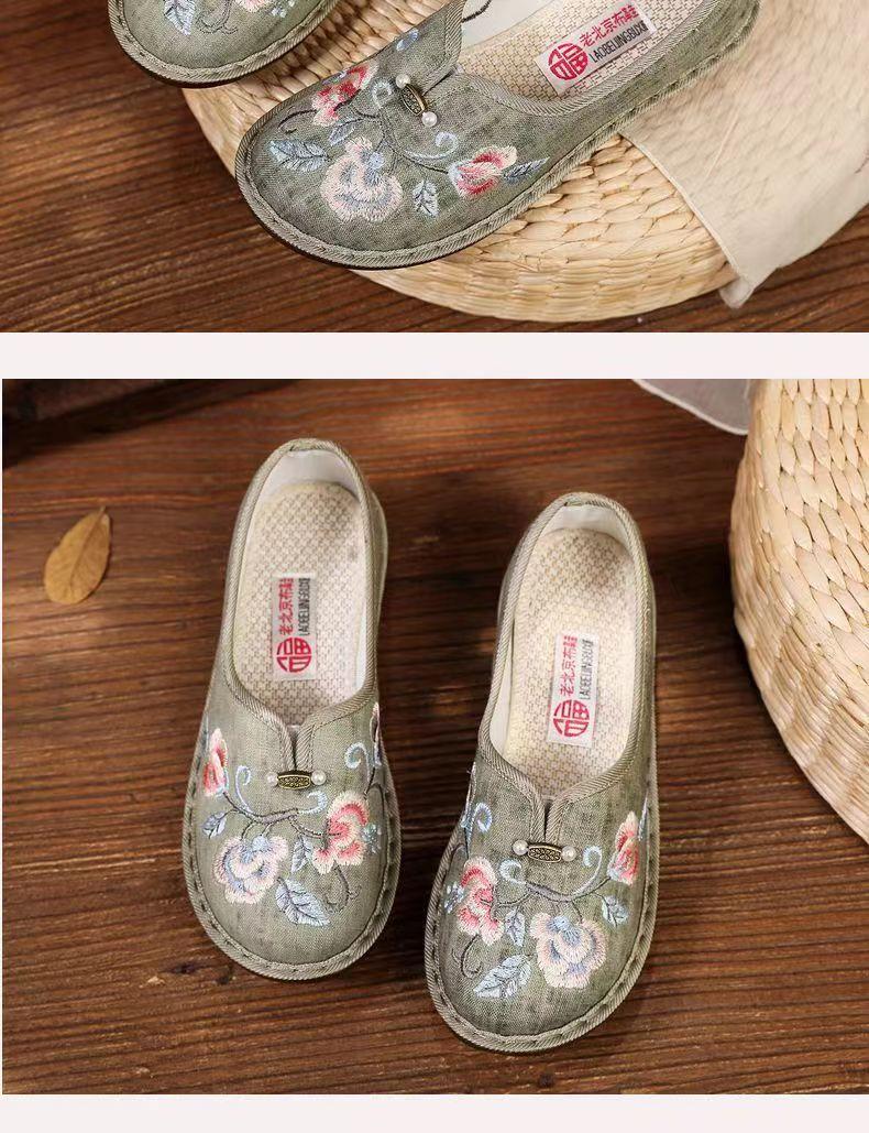 Zapatos de tela de Pekín antiguos para mujer, Zapatos planos para madres, Zapatos casuales de suela blanda para personas de mediana edad y mayores, Zapatos de estilo retro para personas mayores