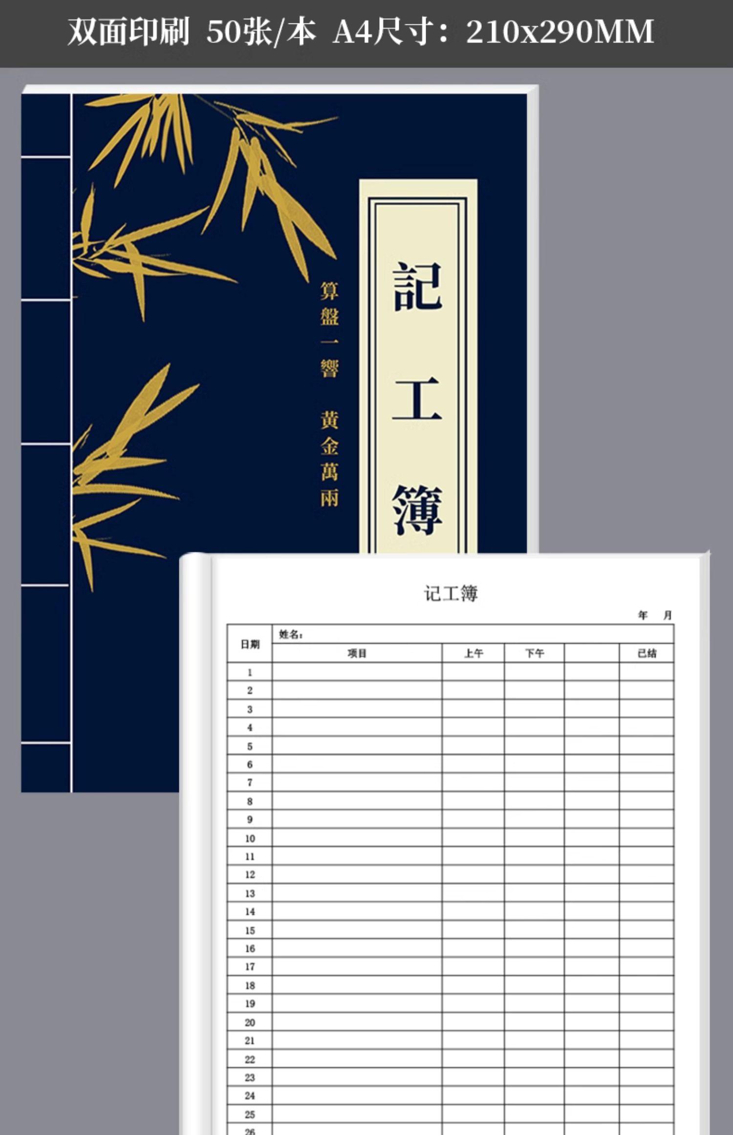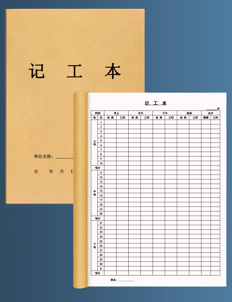 Libro de registro, libro de registro, formulario de asistencia al sitio del trabajador de la construcción, registro de asistencia del trabajador temporal, registro individual durante 31 días