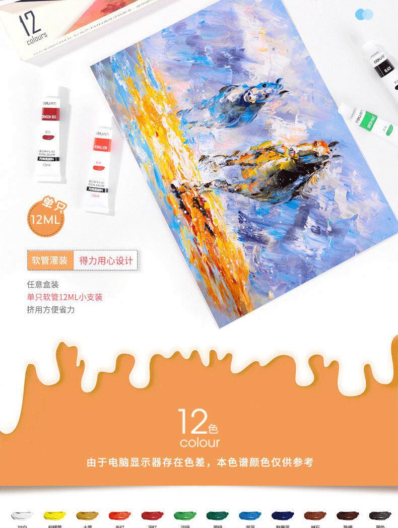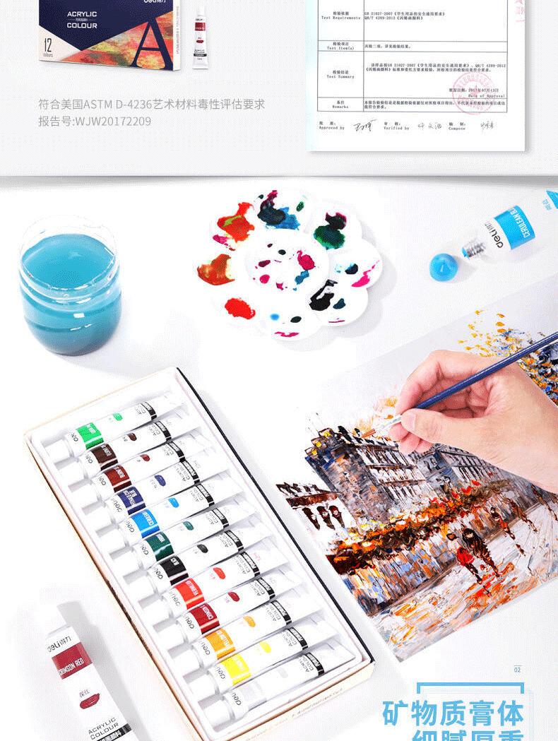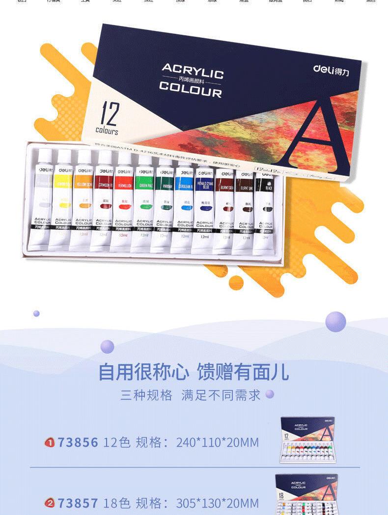 Deli 73857-18 Pigmento acrílico de color L Traje para principiantes Pintura acrílica Pintada Boceto de zapato Negro