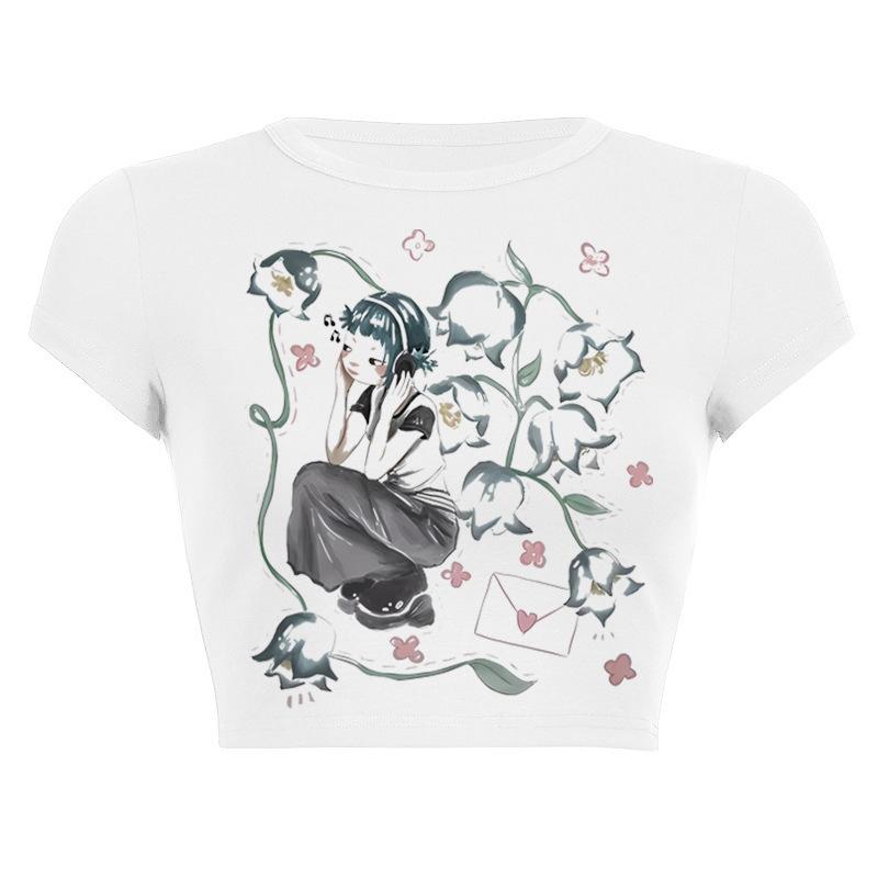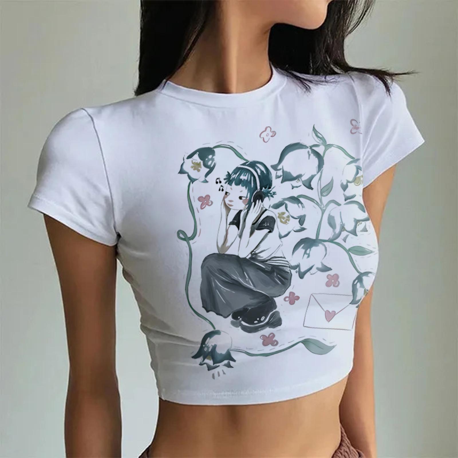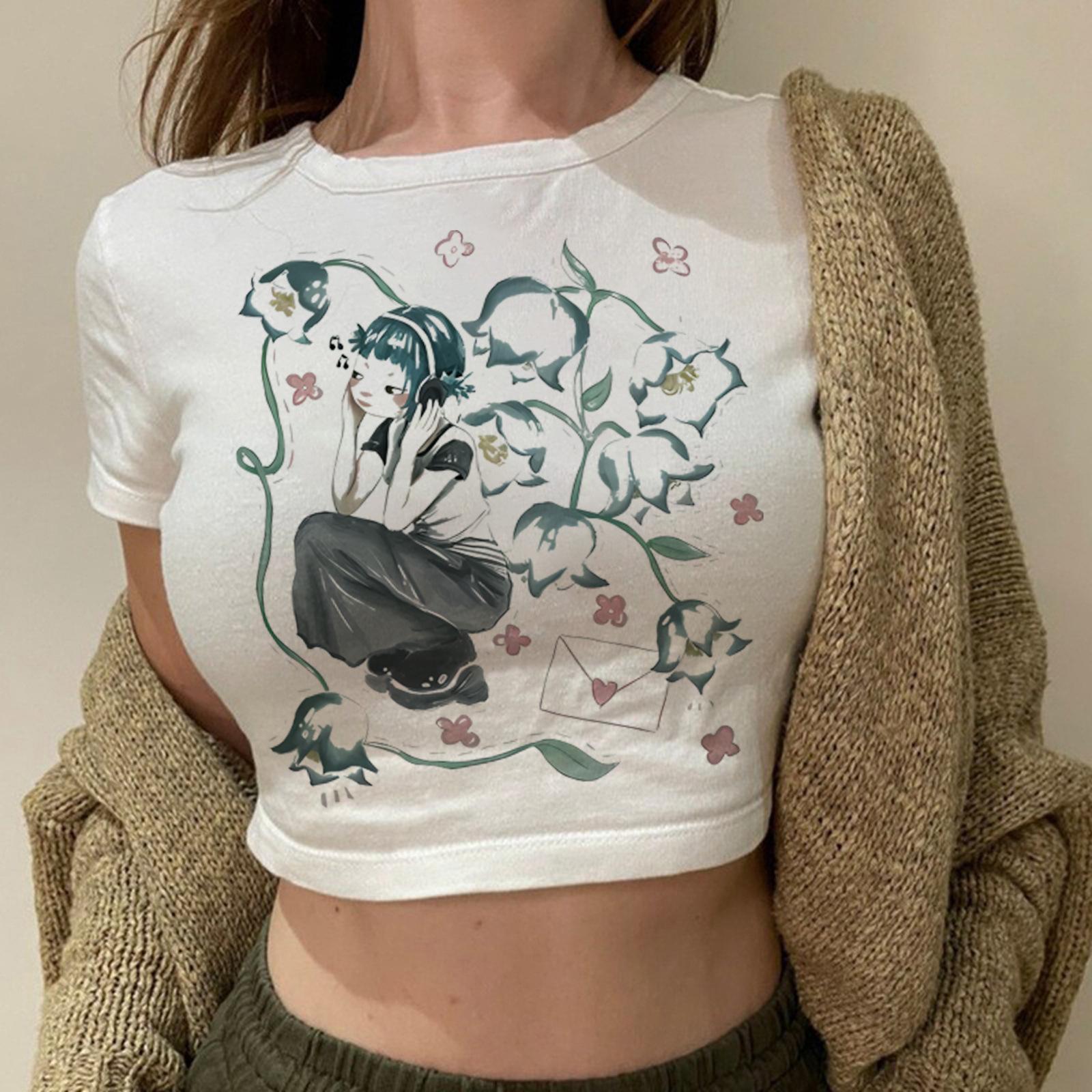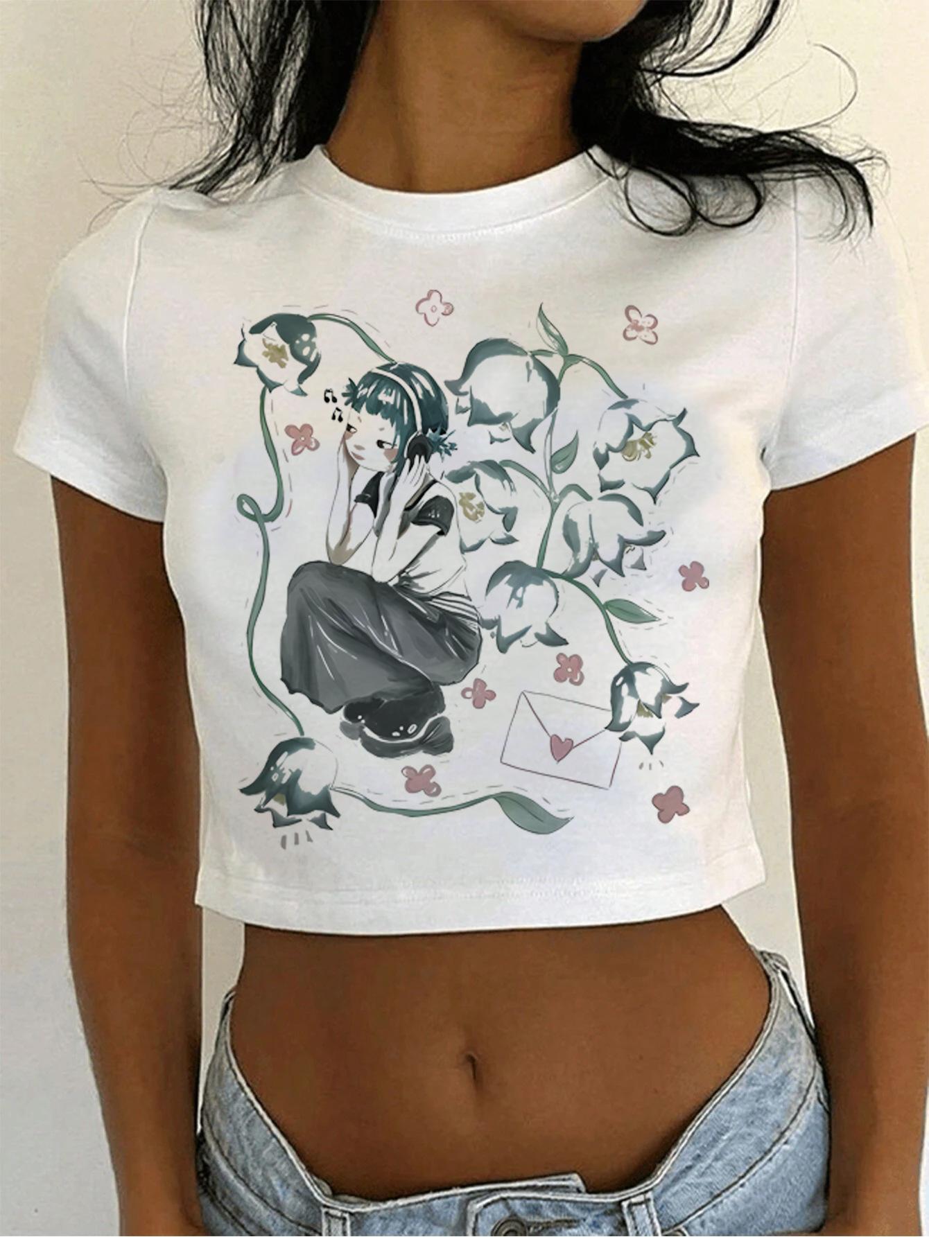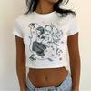 Camiseta corta con cuello redondo y estampado de estilo europeo y americano para chica, ajustada, nueva, de verano, al por mayor