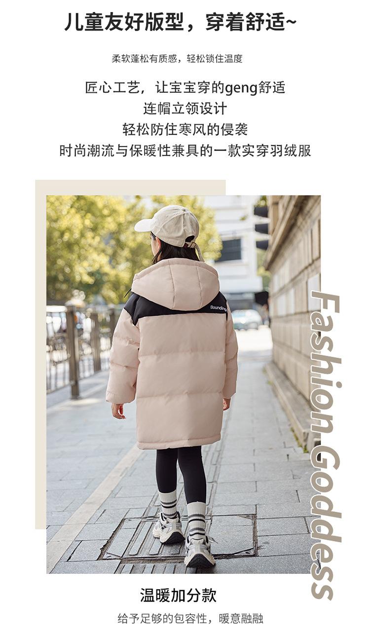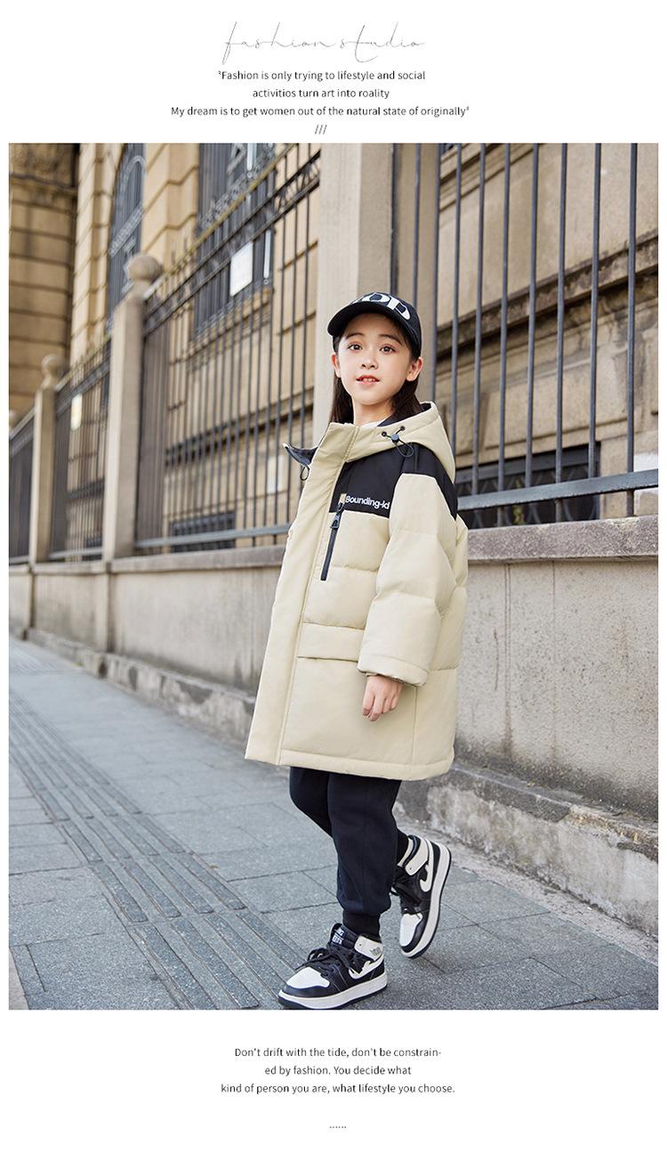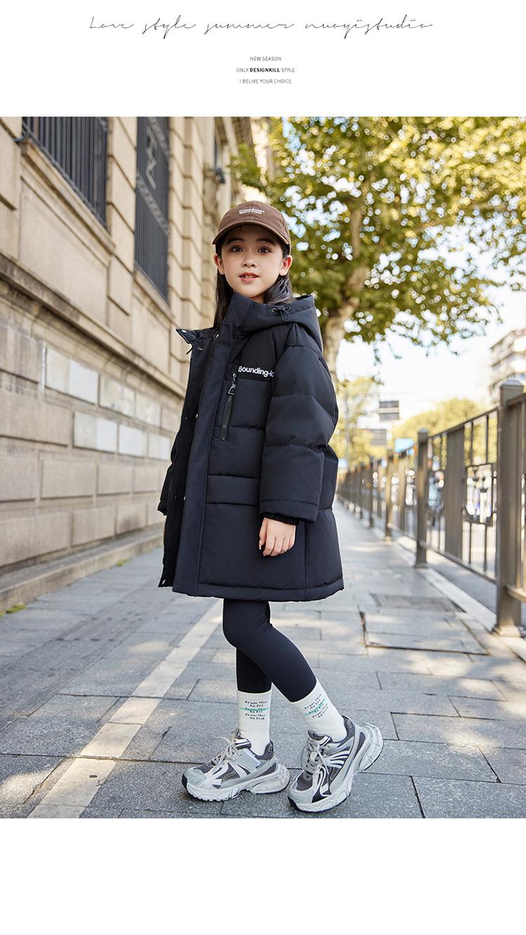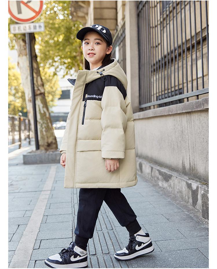 Chaqueta de plumón de pato blanca con capucha para niños, chaqueta cálida y gruesa de moda para niñas de talla mediana y grande, de invierno 2024