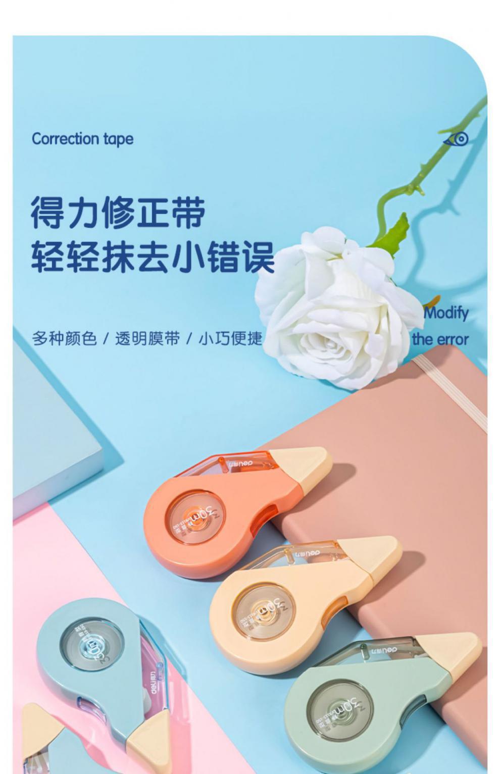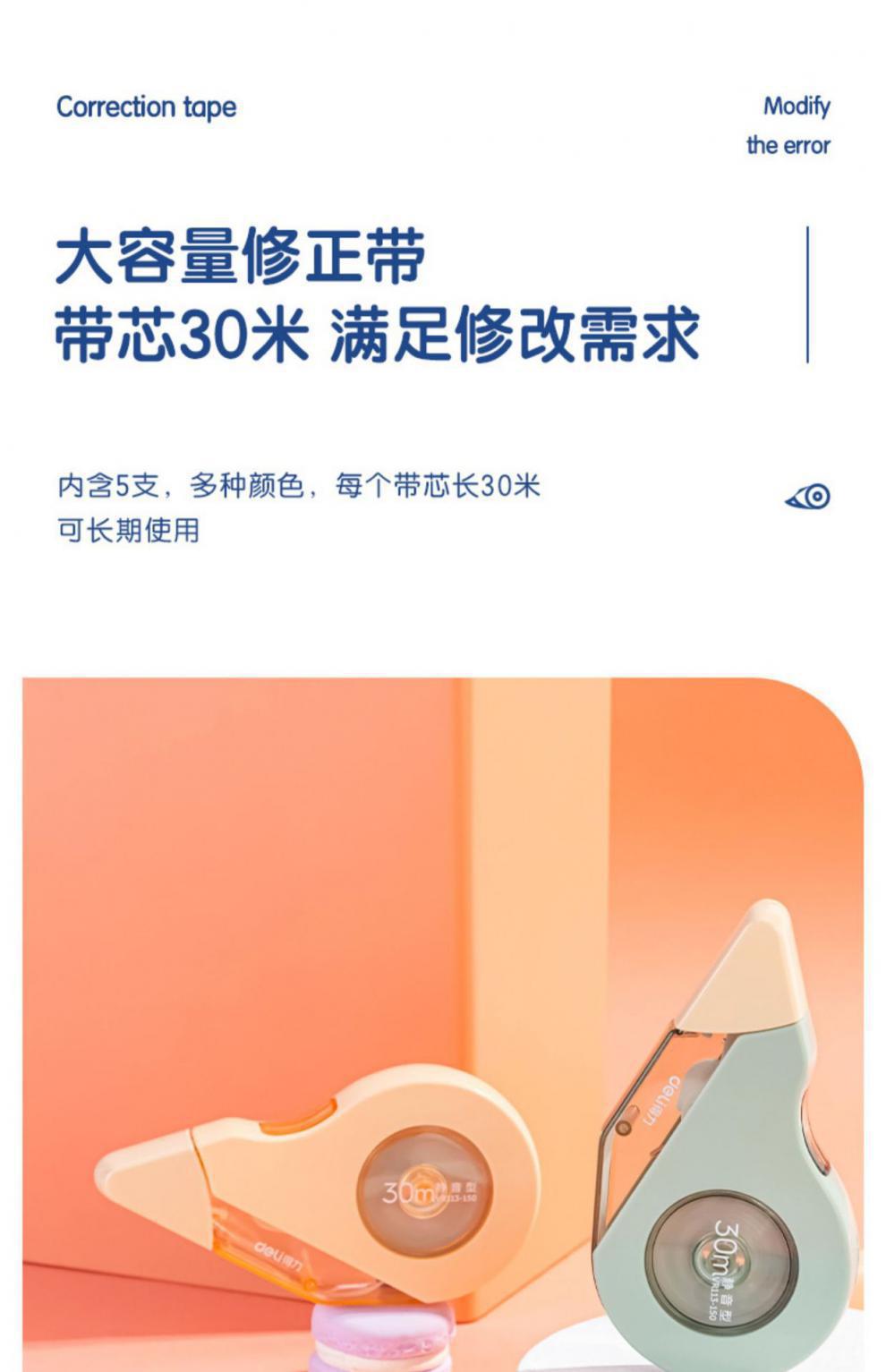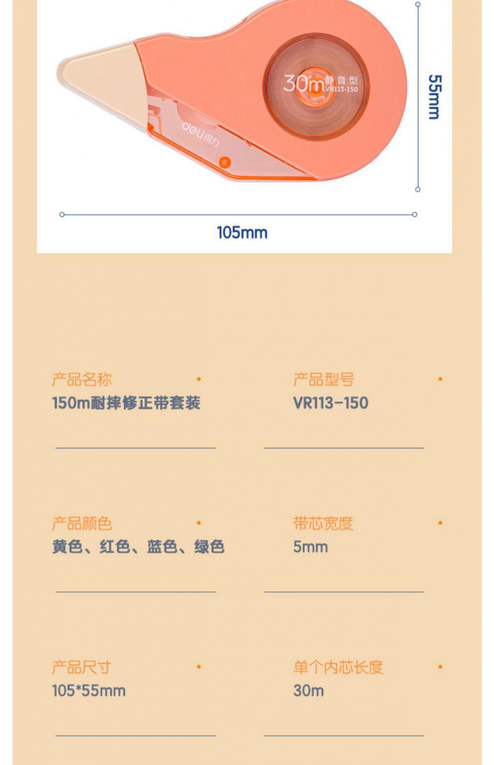 Cinta correctora Deli VR113-150, cinta correctora de papelería para estudiantes, cinta correctora de gran capacidad de 150 m, cinta correctora