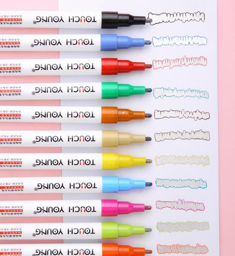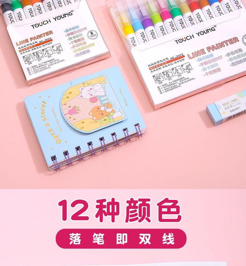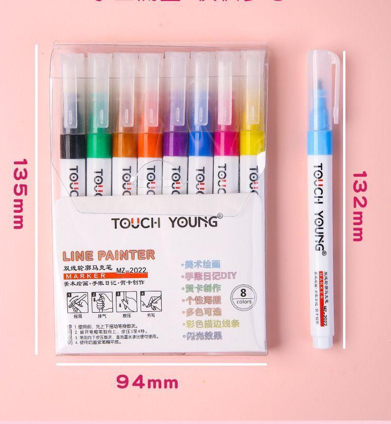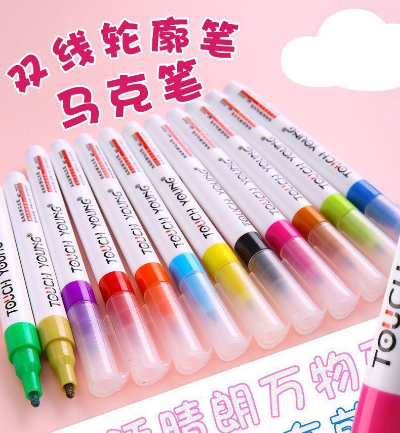 Resaltador Táctil Colorido 12 Piezas 8 Marcador de Contorno de Doble Línea para Manualidades Pintura Artística Set Creativo Especial