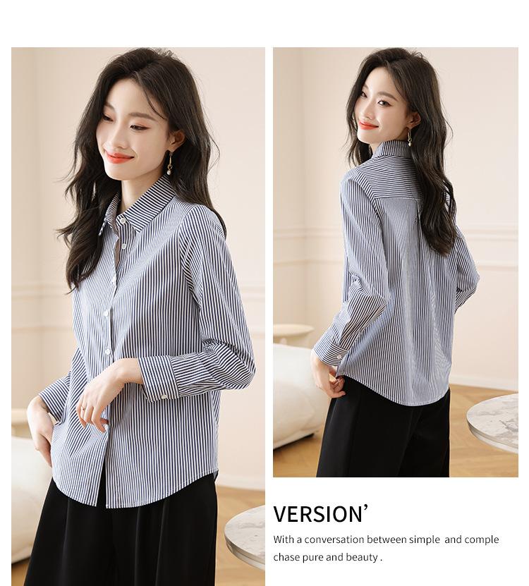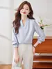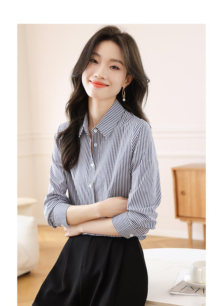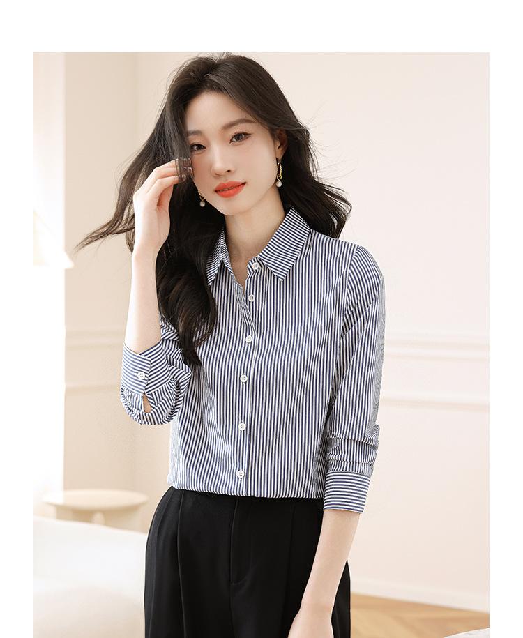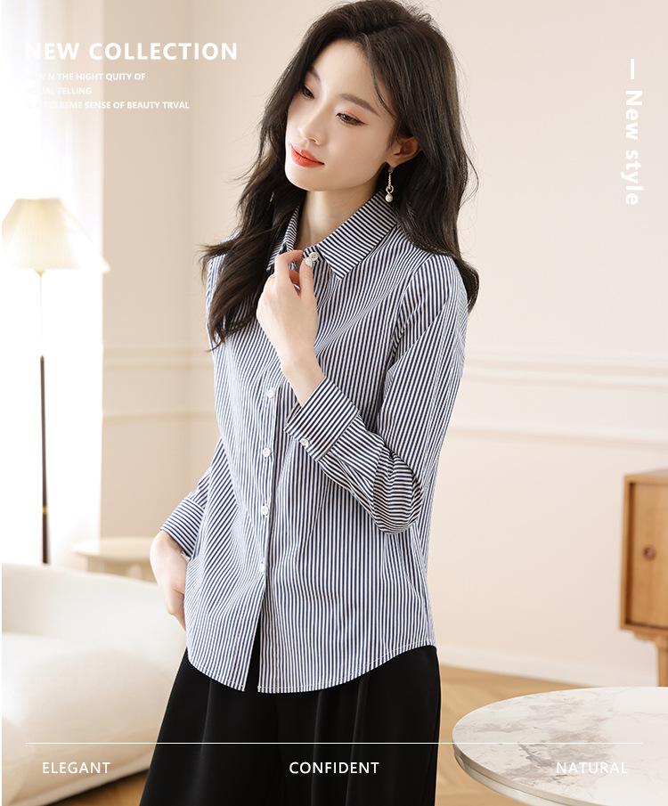 Camisa de rayas azules de primavera y verano 2025 para mujer, camisa informal profesional de manga larga, top interior para uso diario