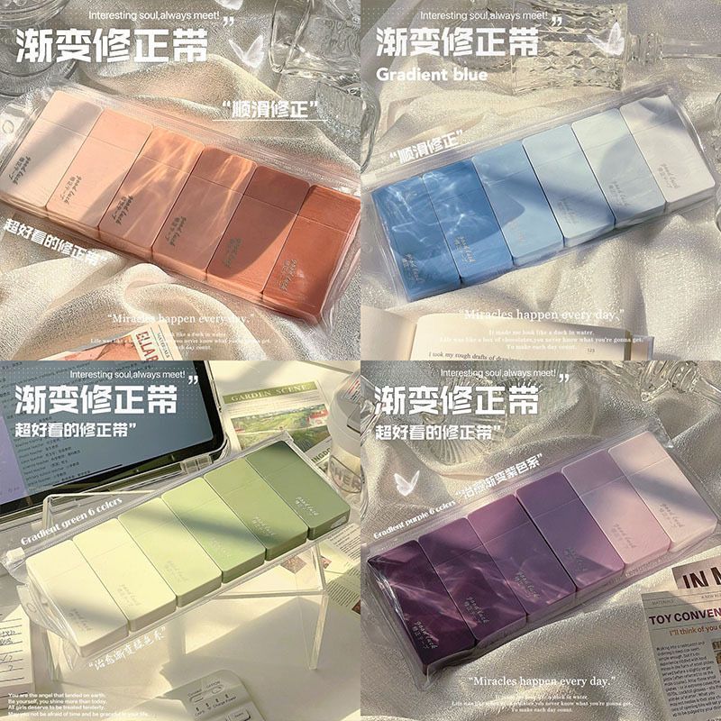 Gradient blue correction tapes 6 pcs/set, Gradient green correction tapes 6 pcs/set, Gradient purple correctio...