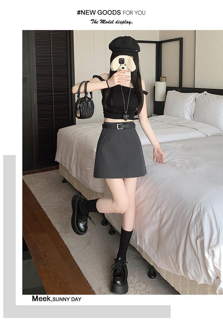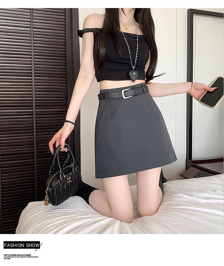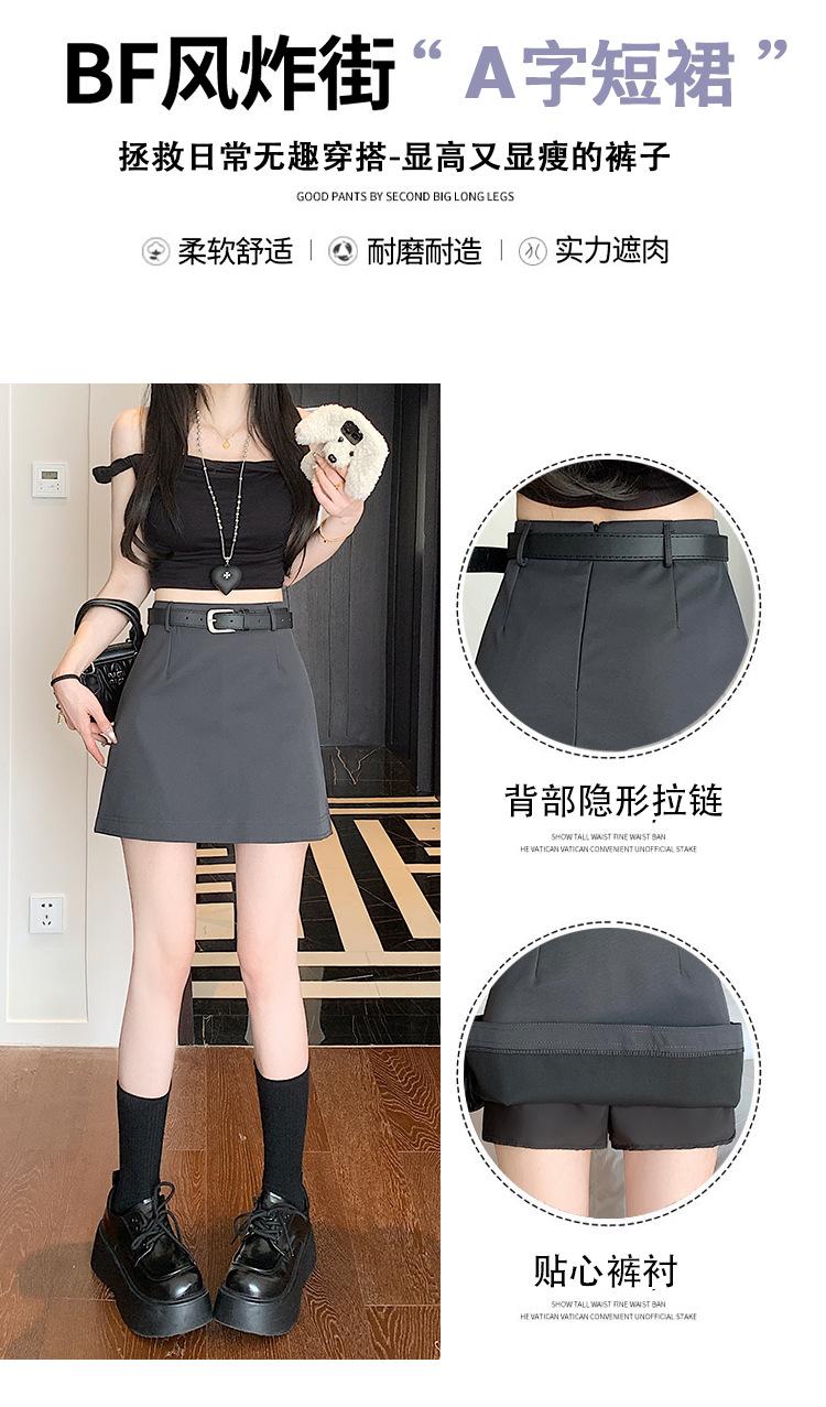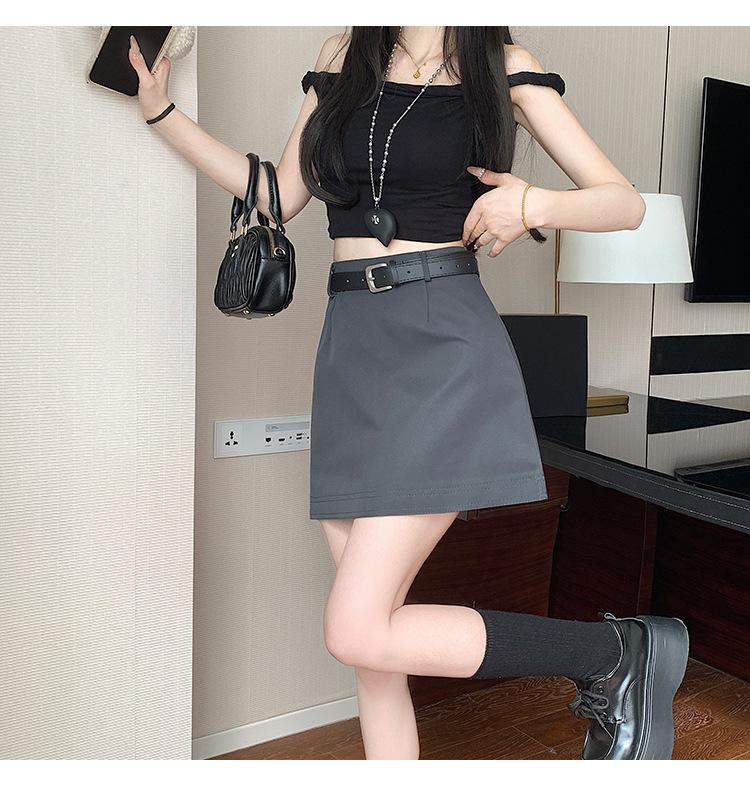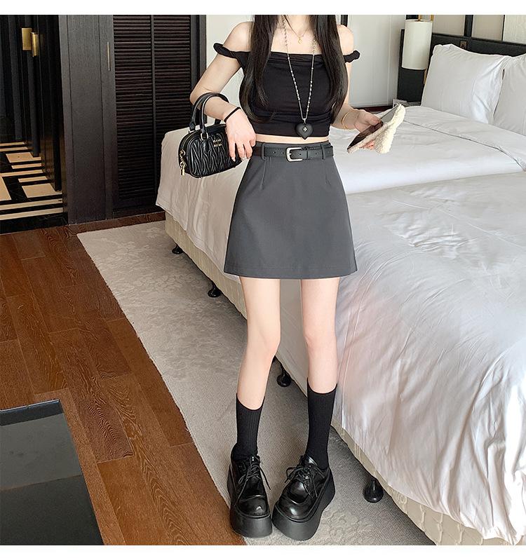 Traje Falda Mujer Primavera y Verano 2025 Nuevo Cintura Alta Adelgazante A-line Cadera Antideslizante Falda Corta Gris