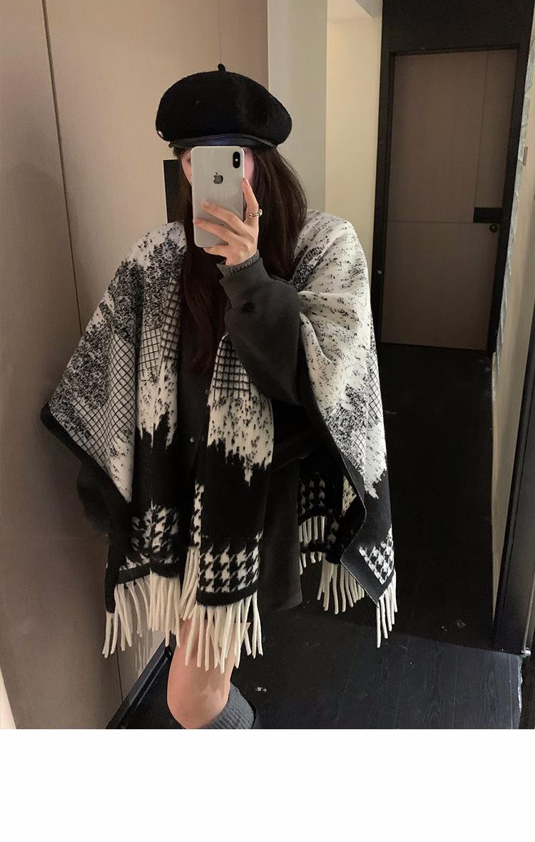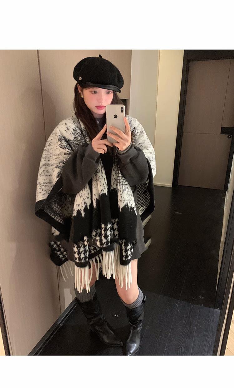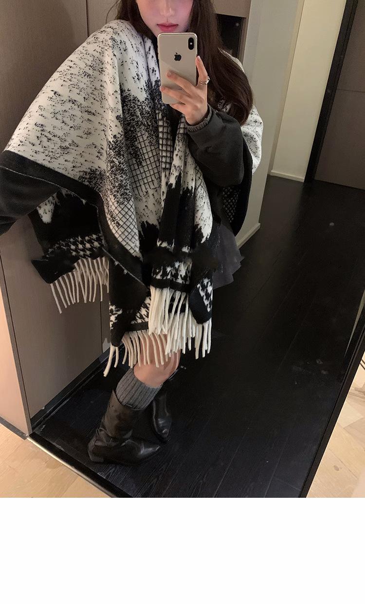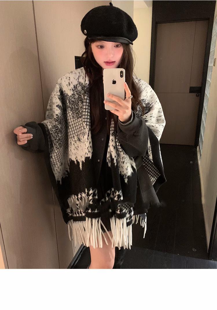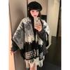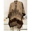 Capa tipo cárdigan con chal para mujer, nueva capa de otoño e invierno 2024, cálida, combinable con todo, chaqueta de punto con borlas.