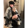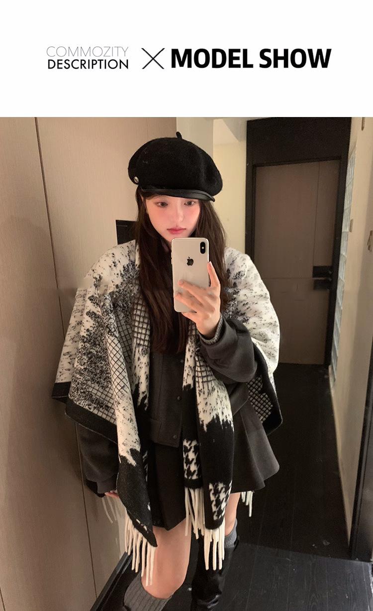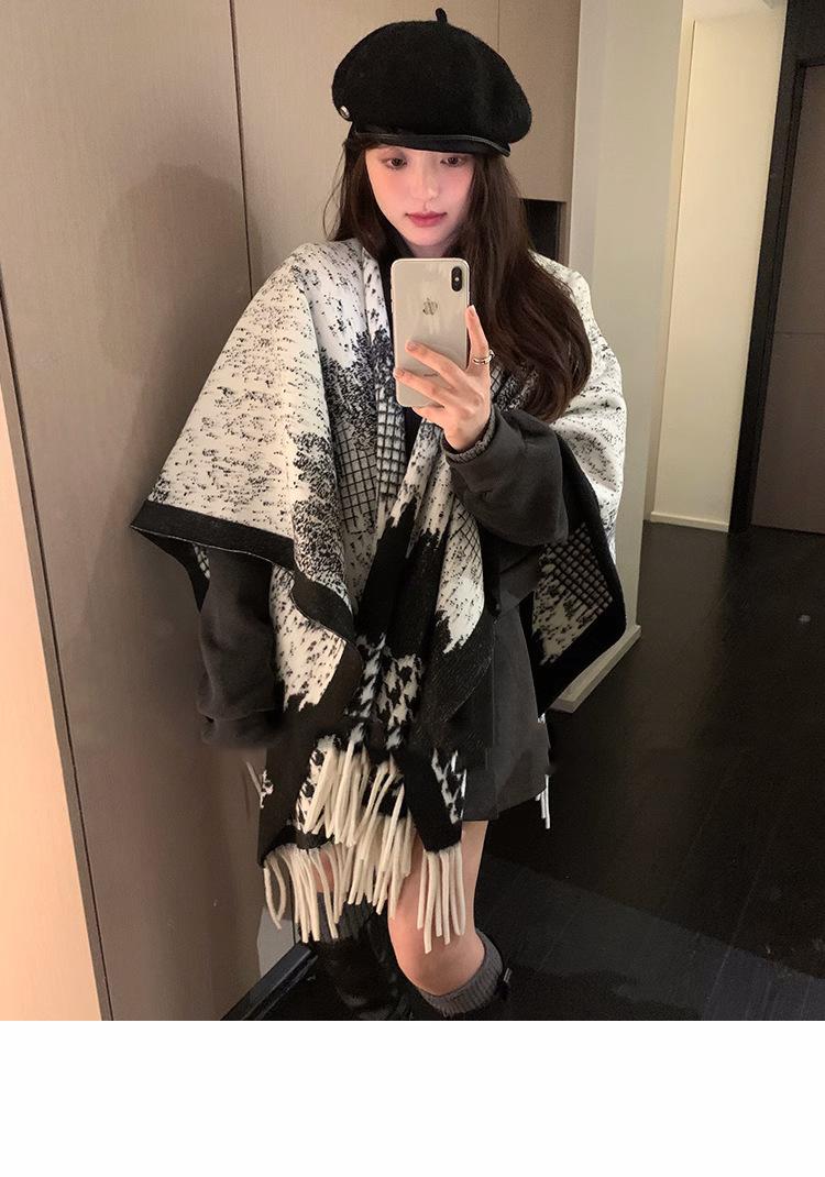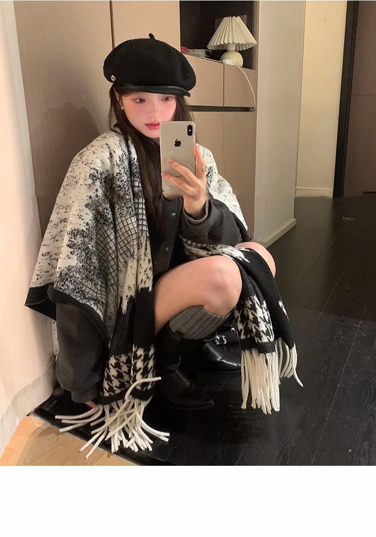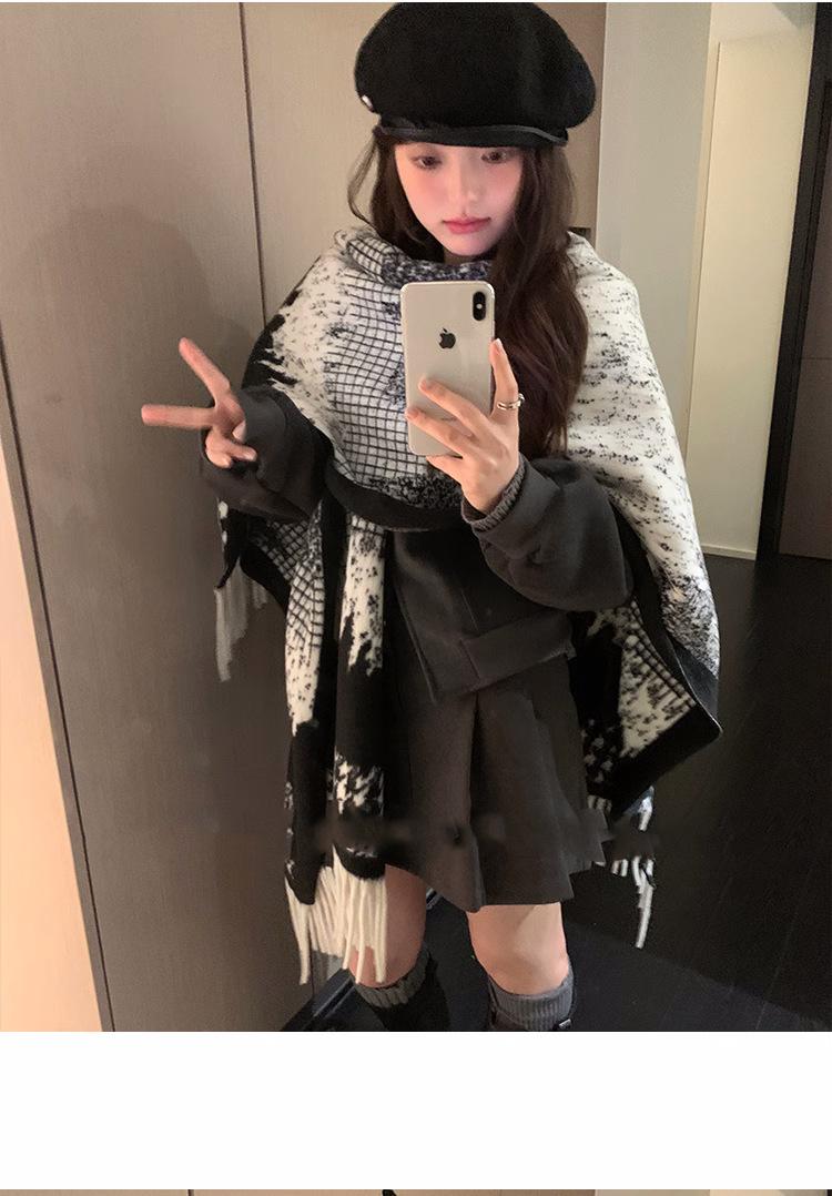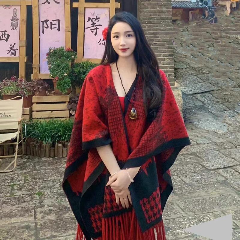 Capa tipo cárdigan con chal para mujer, nueva capa de otoño e invierno 2024, cálida, combinable con todo, chaqueta de punto con borlas.