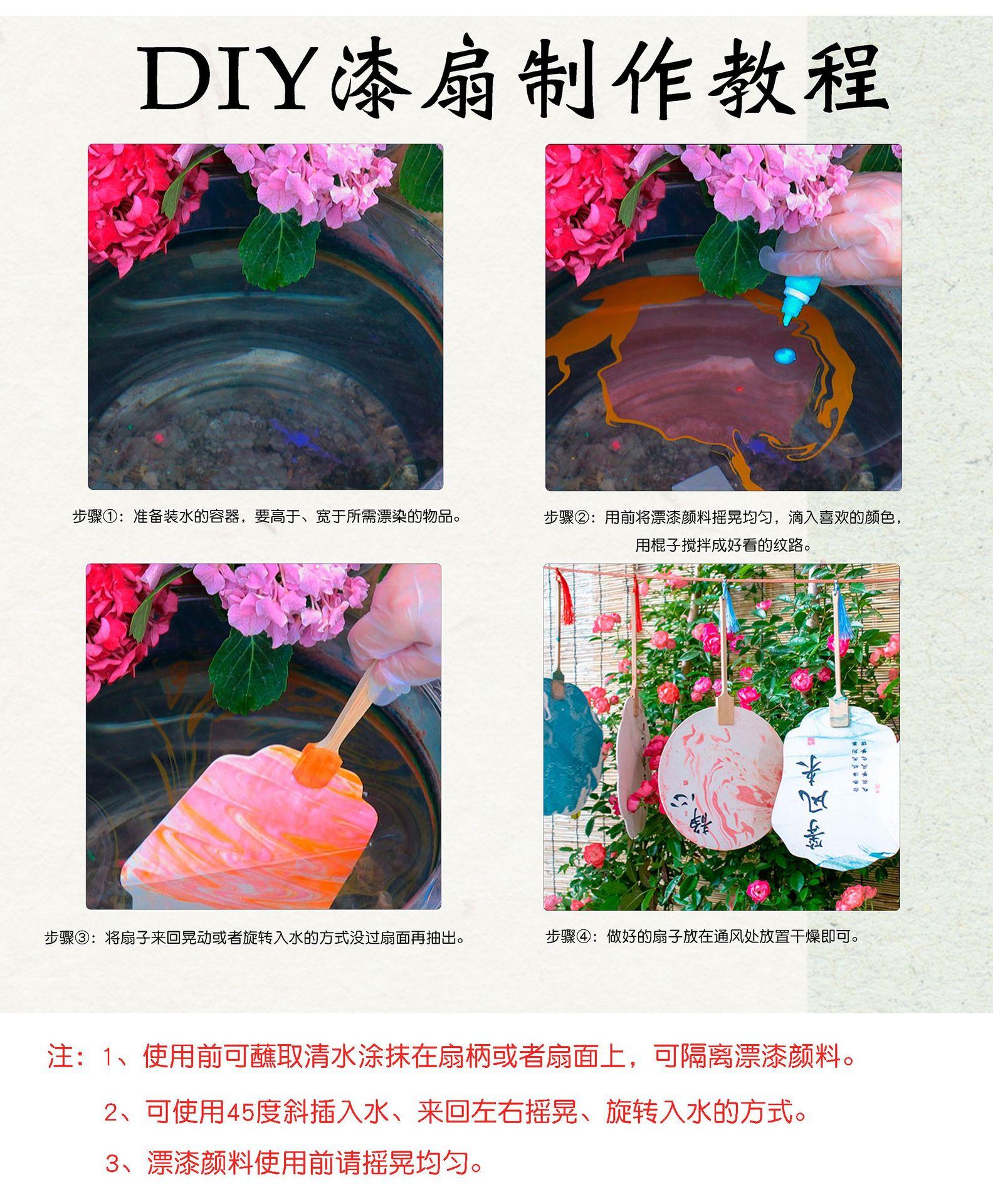 Abanico de Pintura Pigmento Especial Laca Natural Laca Blanqueadora Paquete de Materiales Traje Hecho a Mano DIY Abanico Tuo de Agua Abanico Plegable Marcapáginas