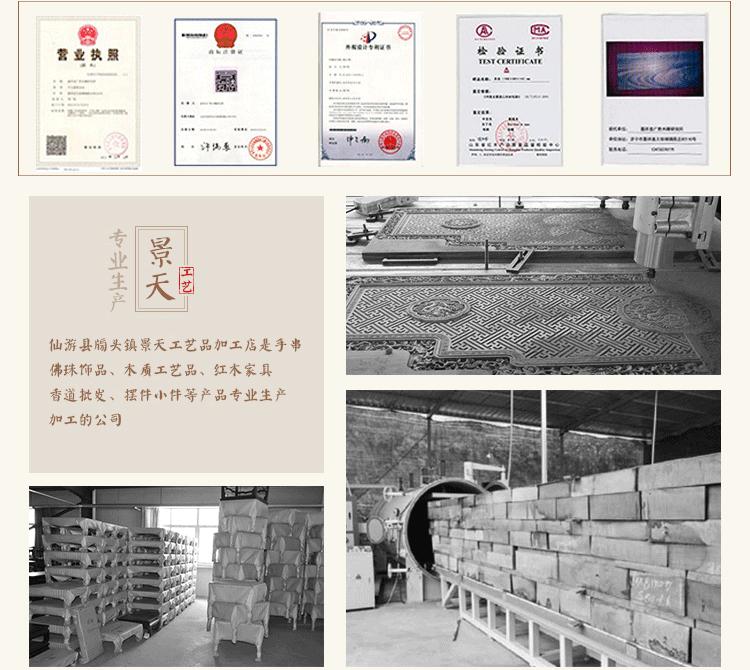 Nuestra Artesanía Jingtian se encuentra en Baxia, China, la capital del mueble artesanal clásico chino. Es un fabricante que integra diseño, producción, ventas, servicio y personalización. Utiliza principalmente sándalo rojo, palo rosa, tuya, huanghuali, nanmu dorado y otros productos de madera. Mediante una rigurosa artesanía, talla con esmero diversas artesanías clásicas de caoba con valor práctico, ornamental y de colección. La integridad de la empresa, sus productos de alta calidad y su servicio integral le han granjeado el favor y el reconocimiento de clientes nuevos y antiguos. Buscamos agentes y distribuidores.
