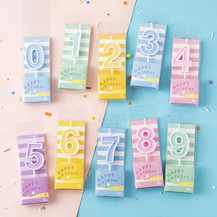 Venta al por mayor Serie de Colores Macaroon Vela Digital 0-9 Serie de Colores Decoración para Insertar en Pastel de Cumpleaños para Niños