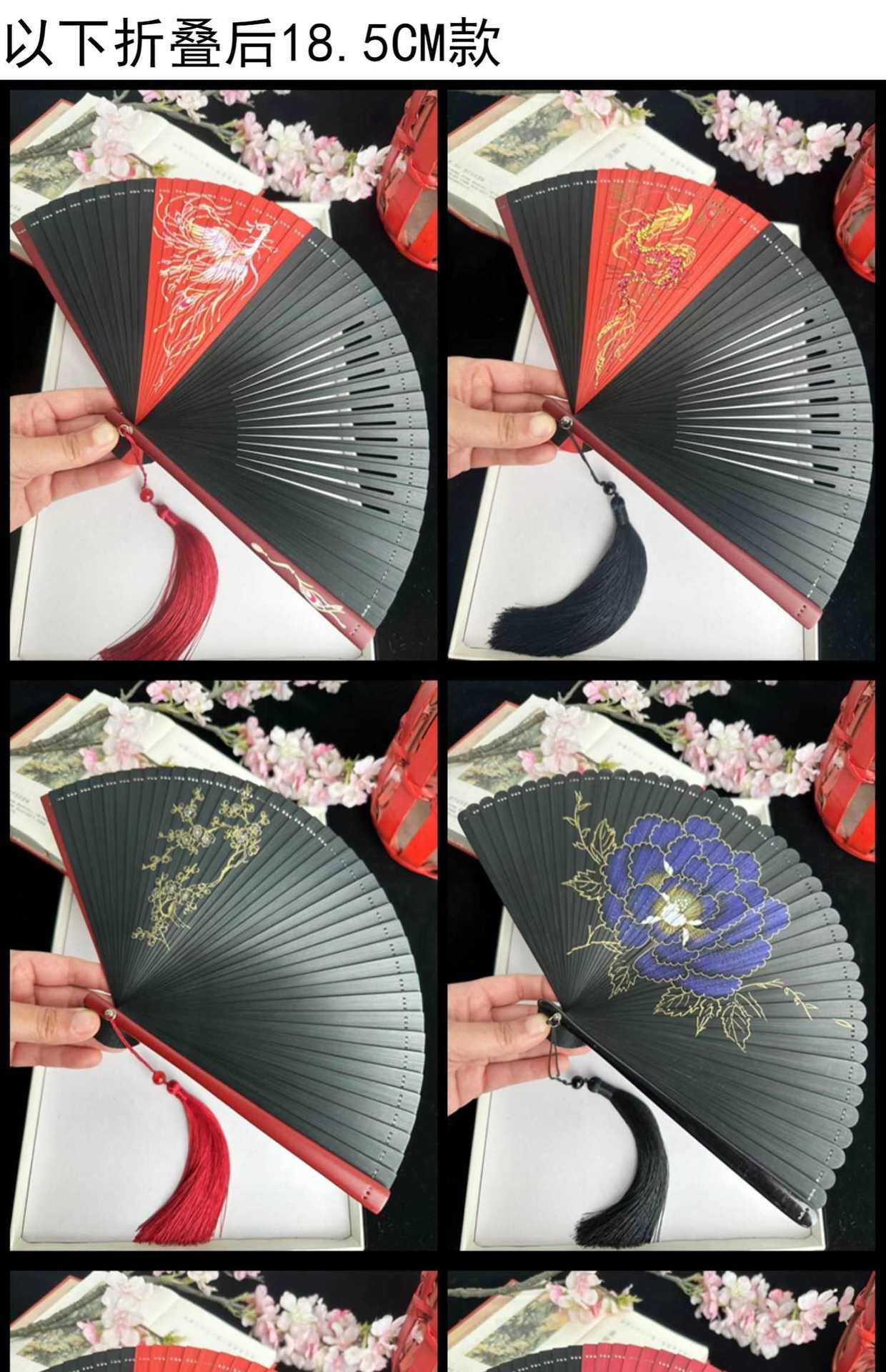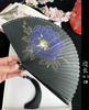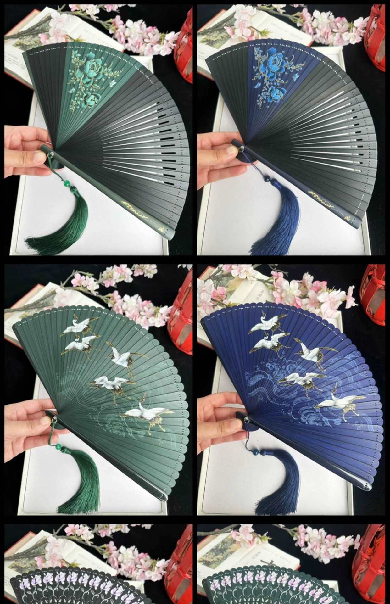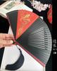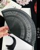 Abanico de bambú antiguo al por mayor, abanico plegable hueco para damas, abanico de baile pequeño negro de verano, abanico clásico portátil plegable