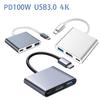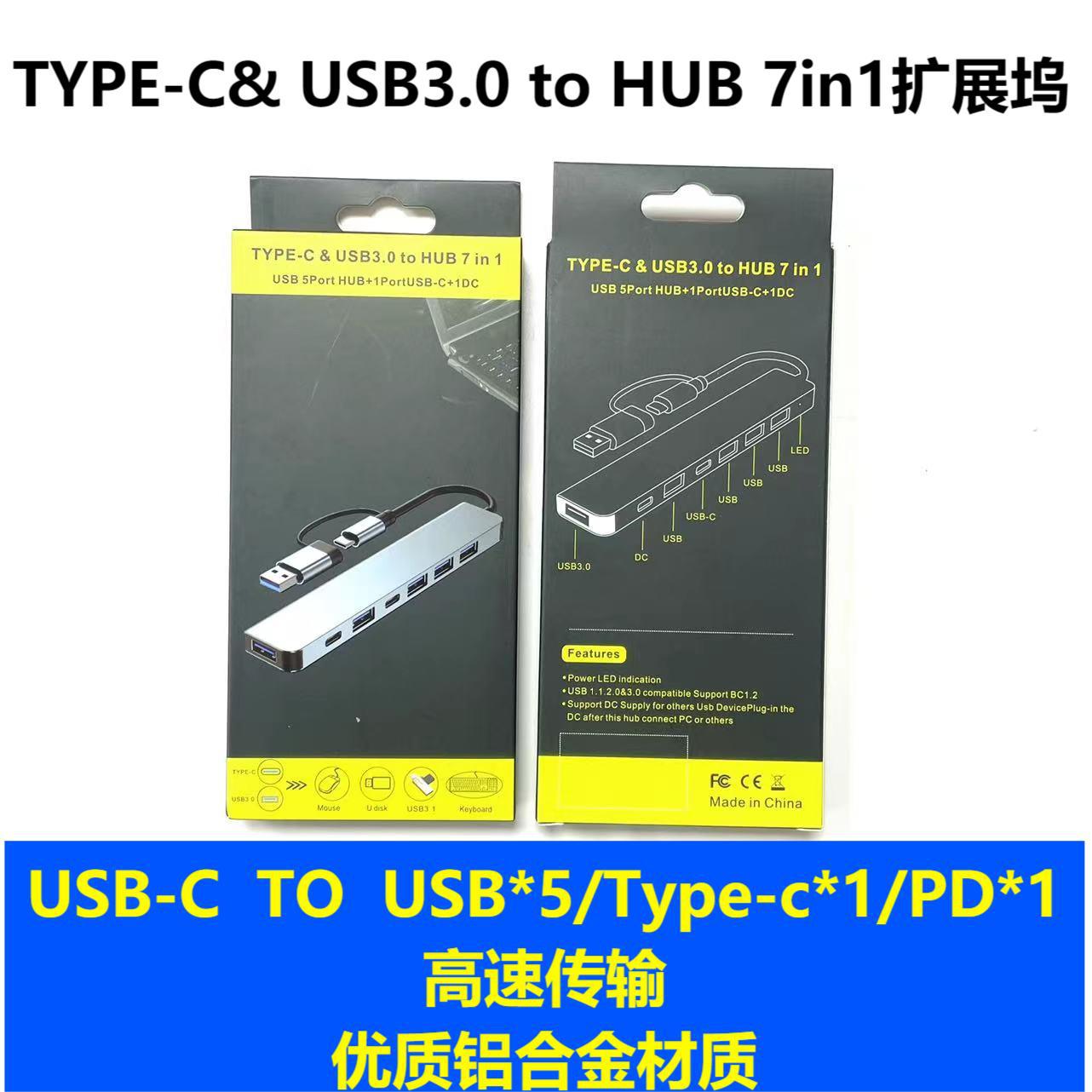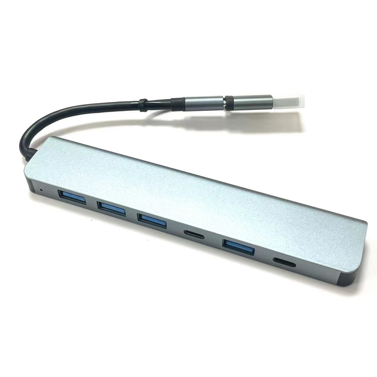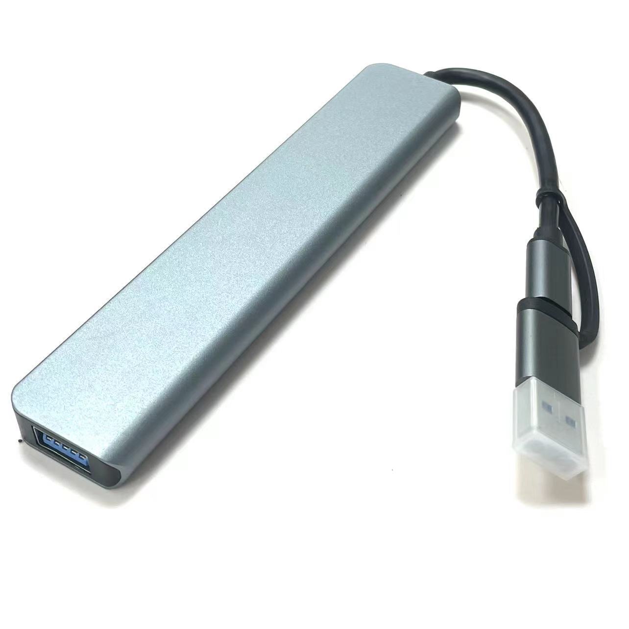 Estación de acoplamiento 7 en 1 USB/Tipo C con diseño de doble cabezal, expansión multiinterfaz, plug and play para portátiles