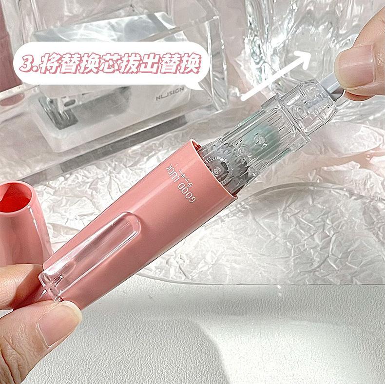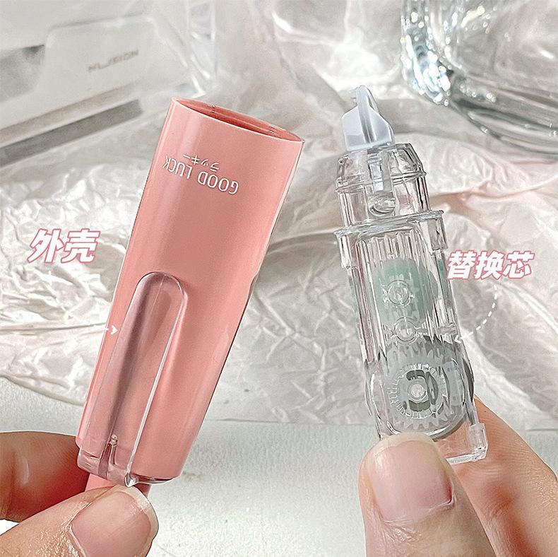 Cinta correctora de empuje estilo Ins, pequeña, portátil, con forma de dibujos animados, núcleo reemplazable.
