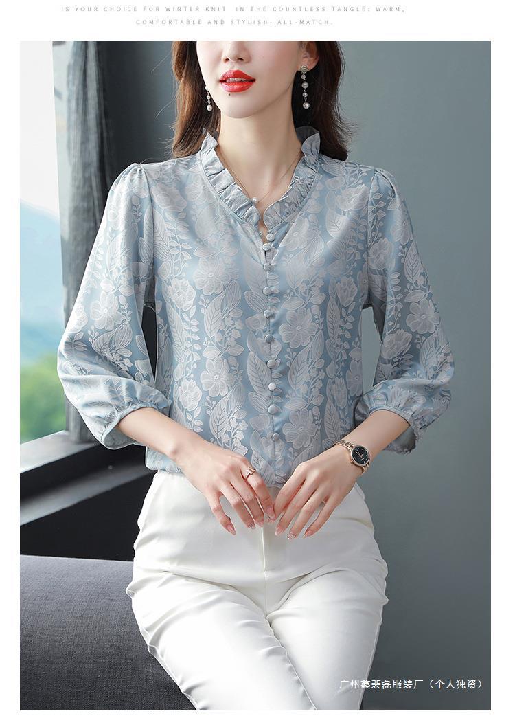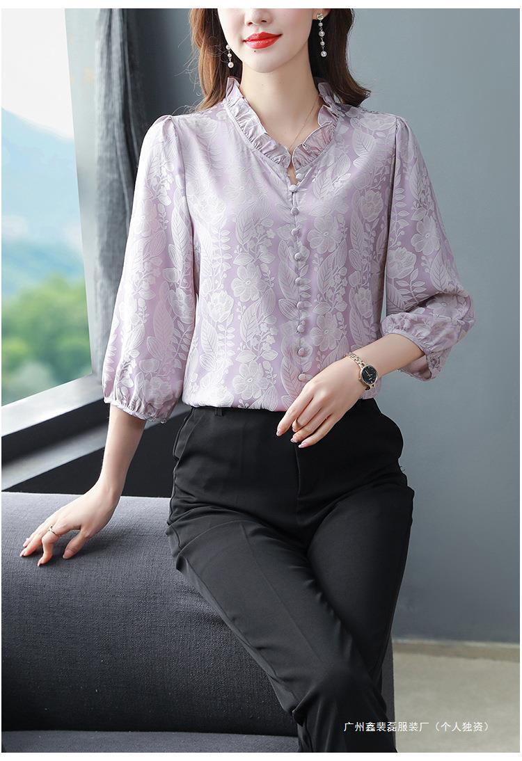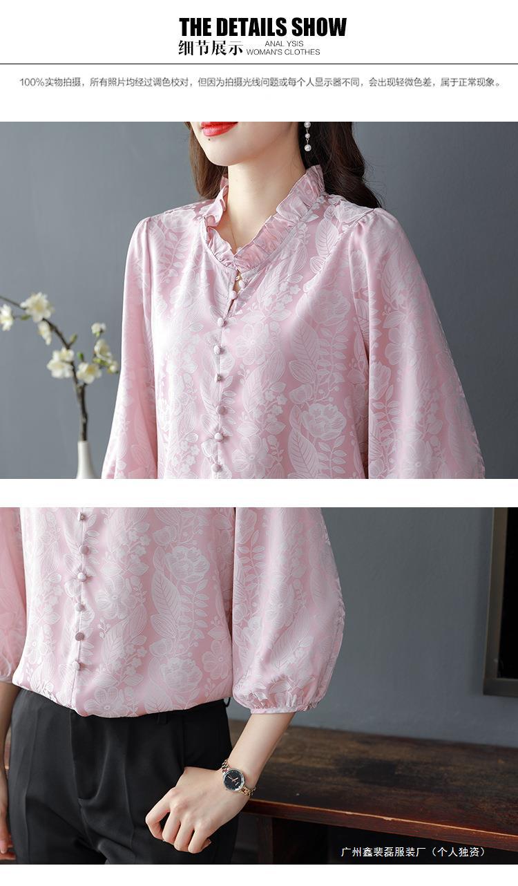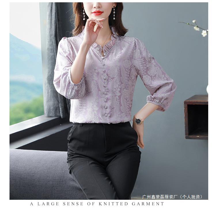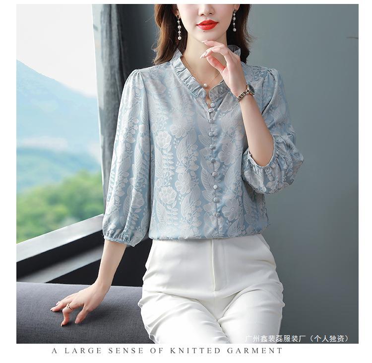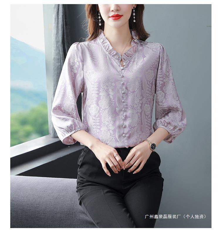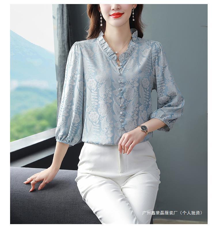Nueva camisa holgada estampada de Hangzhou, camisa pequeña de estilo occidental, camisa de seda morera de primavera y otoño