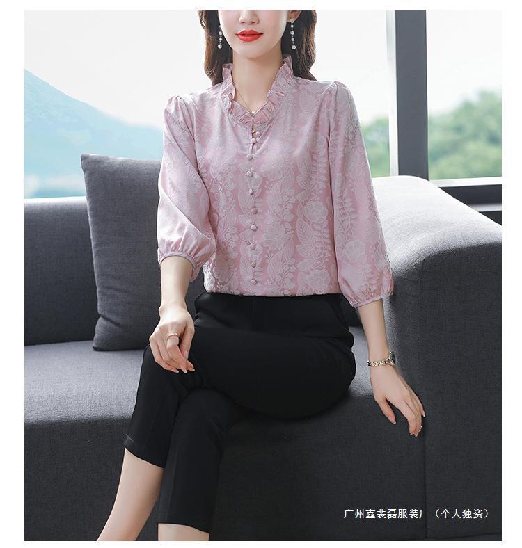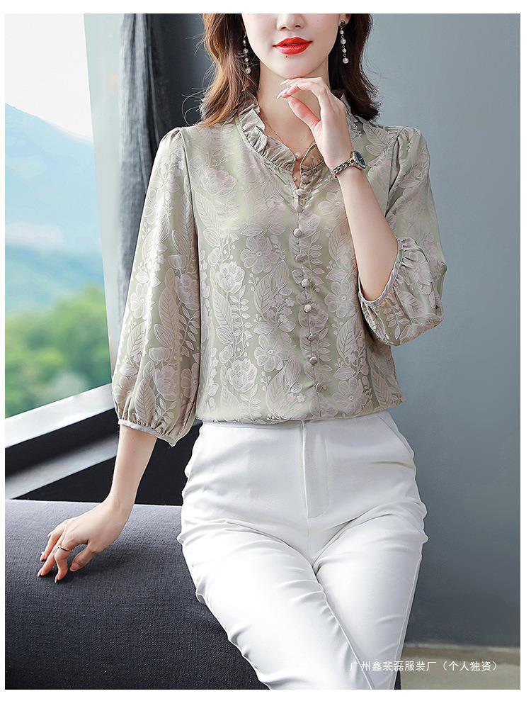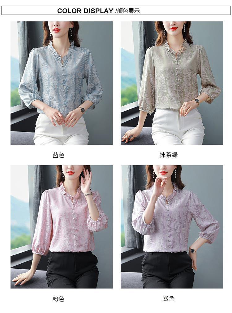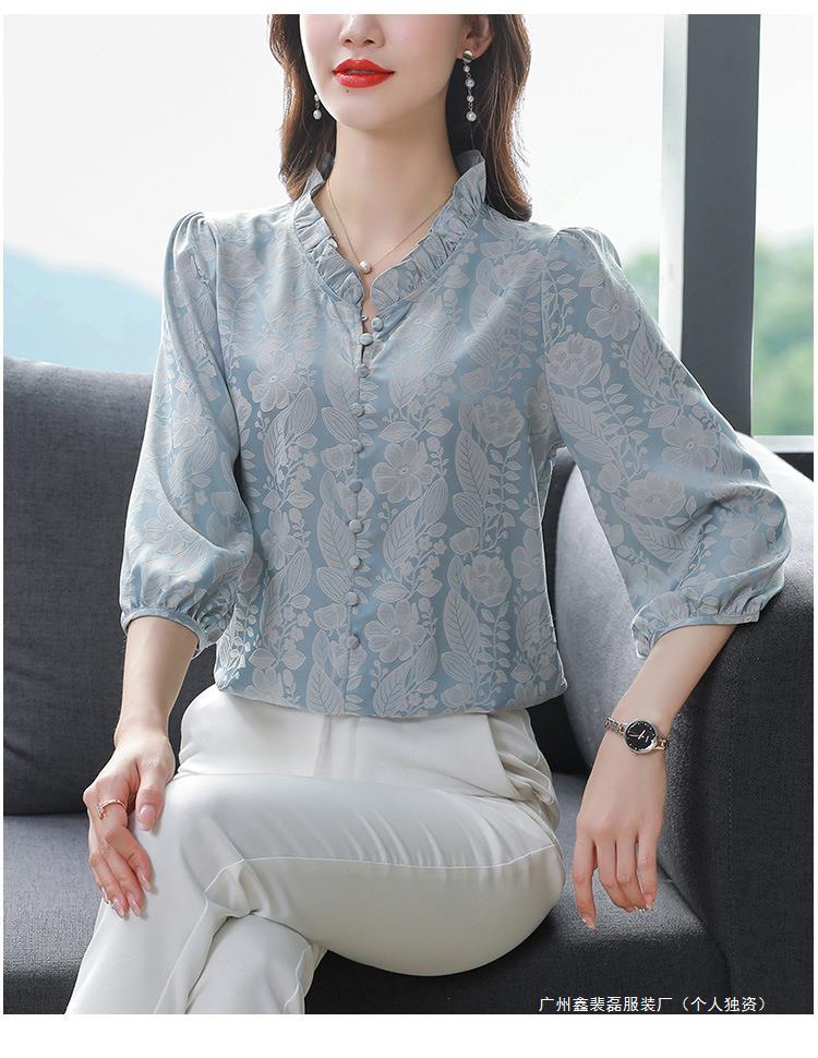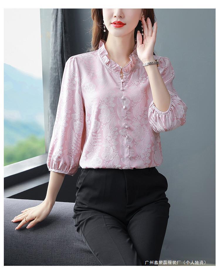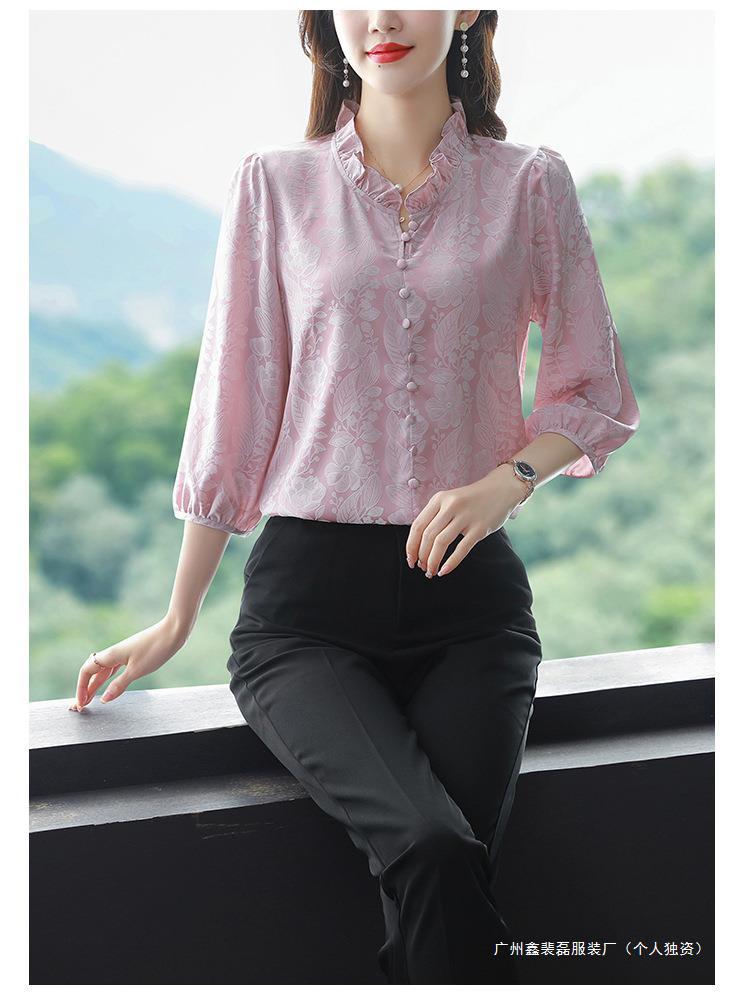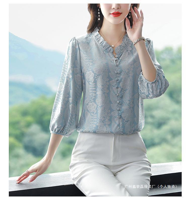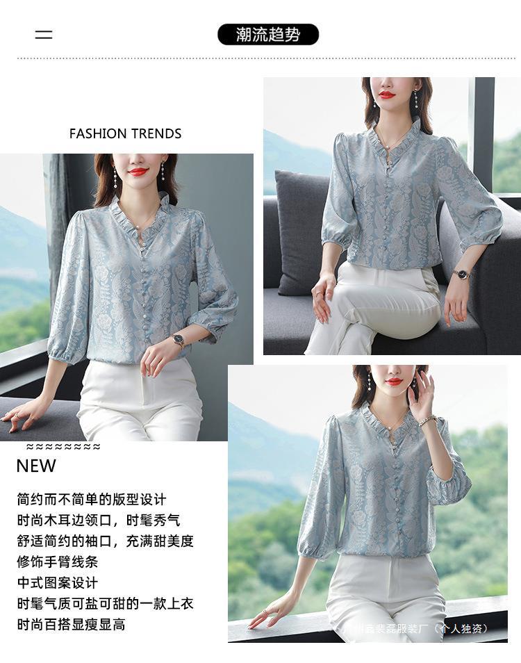 Nueva camisa holgada estampada de Hangzhou, camisa pequeña de estilo occidental, camisa de seda morera de primavera y otoño