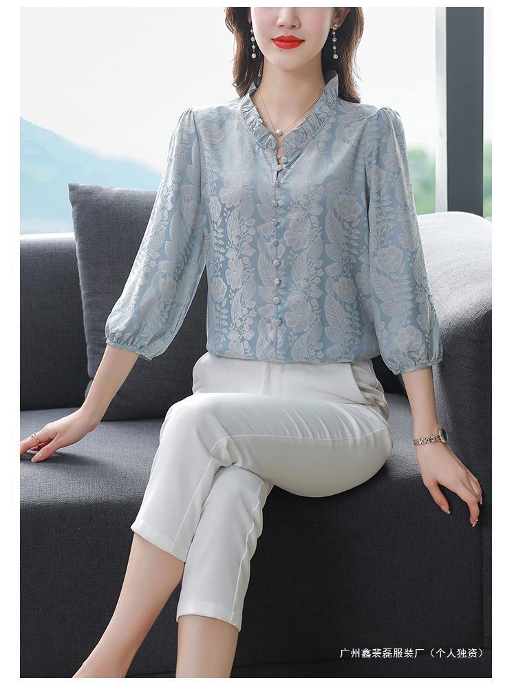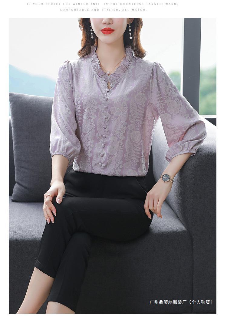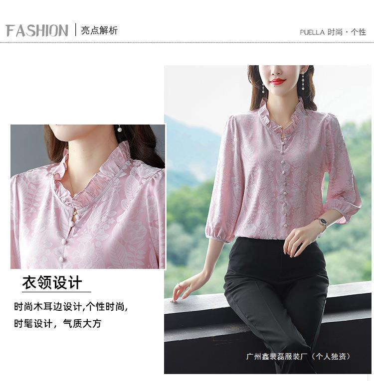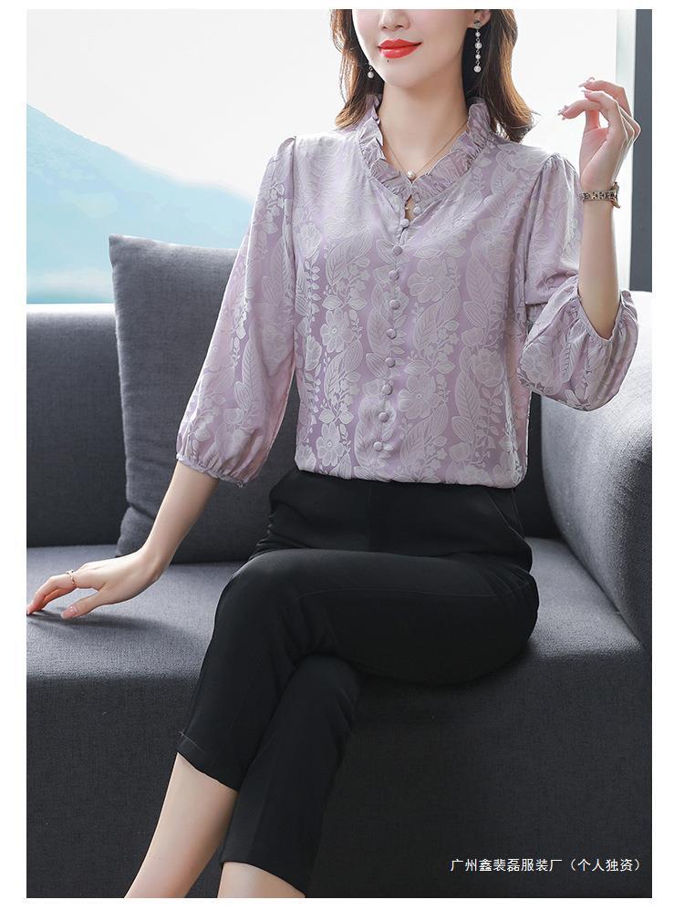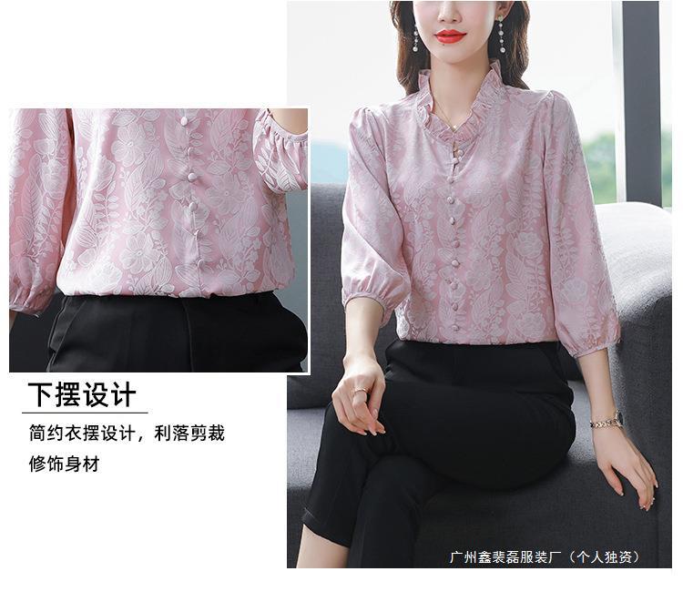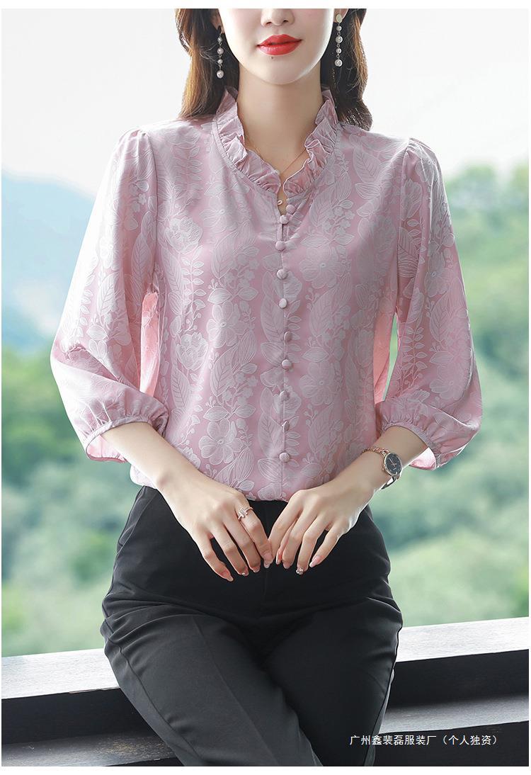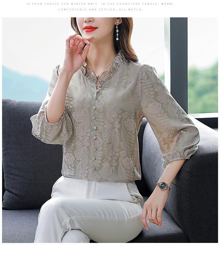 Nueva camisa holgada estampada de Hangzhou, camisa pequeña de estilo occidental, camisa de seda morera de primavera y otoño