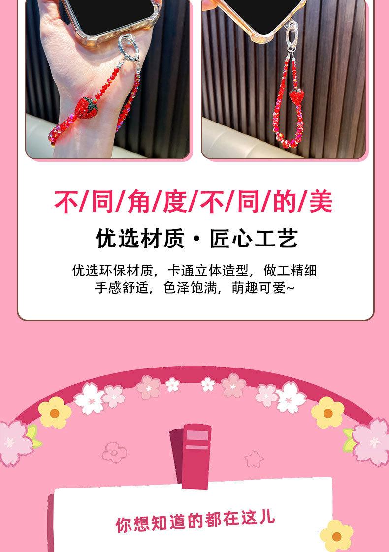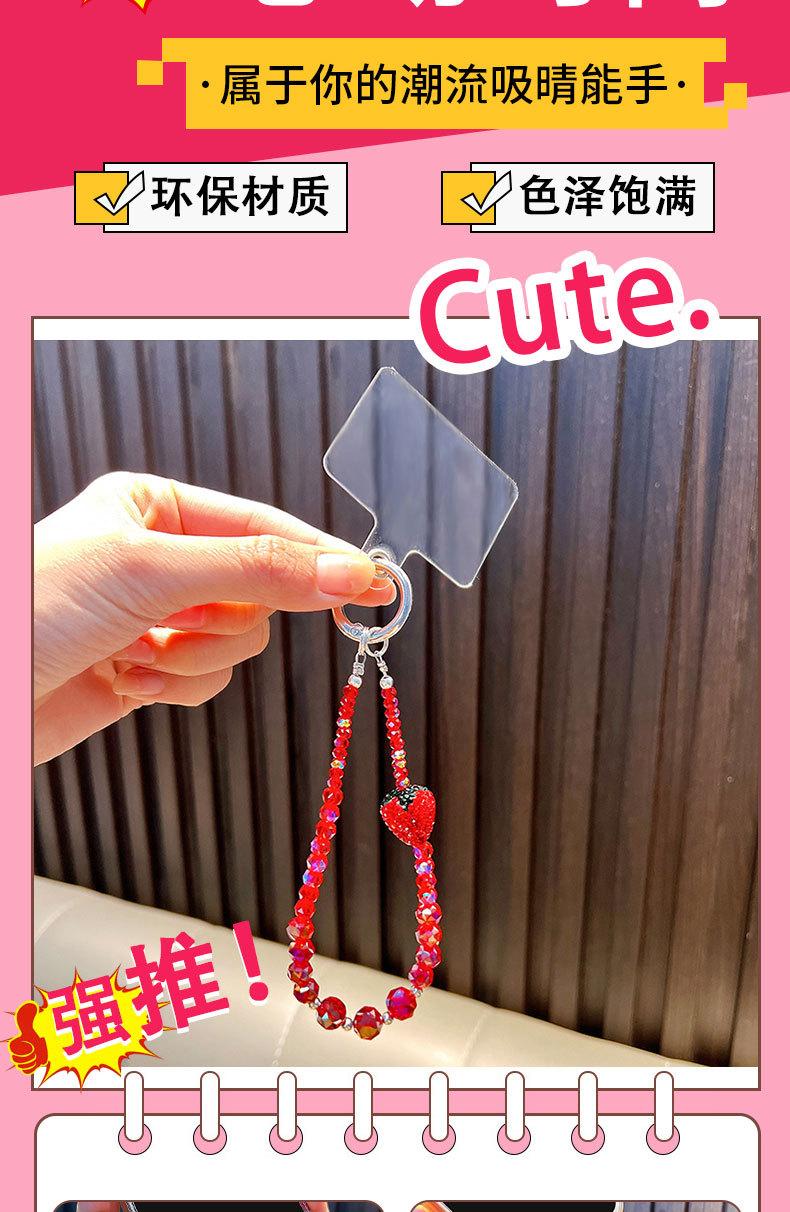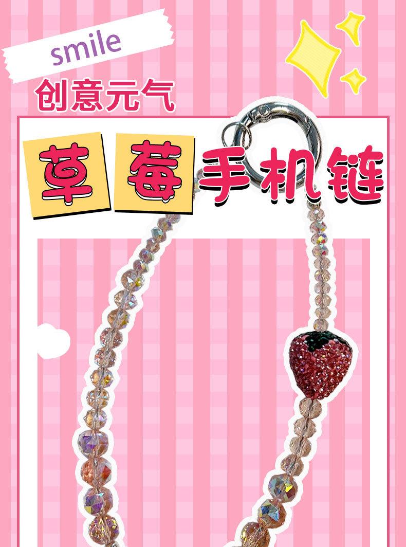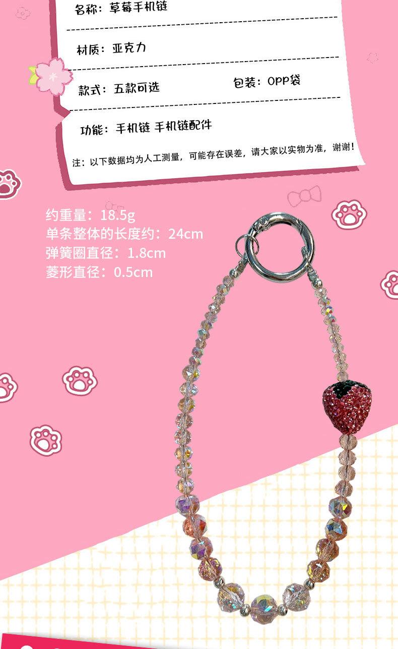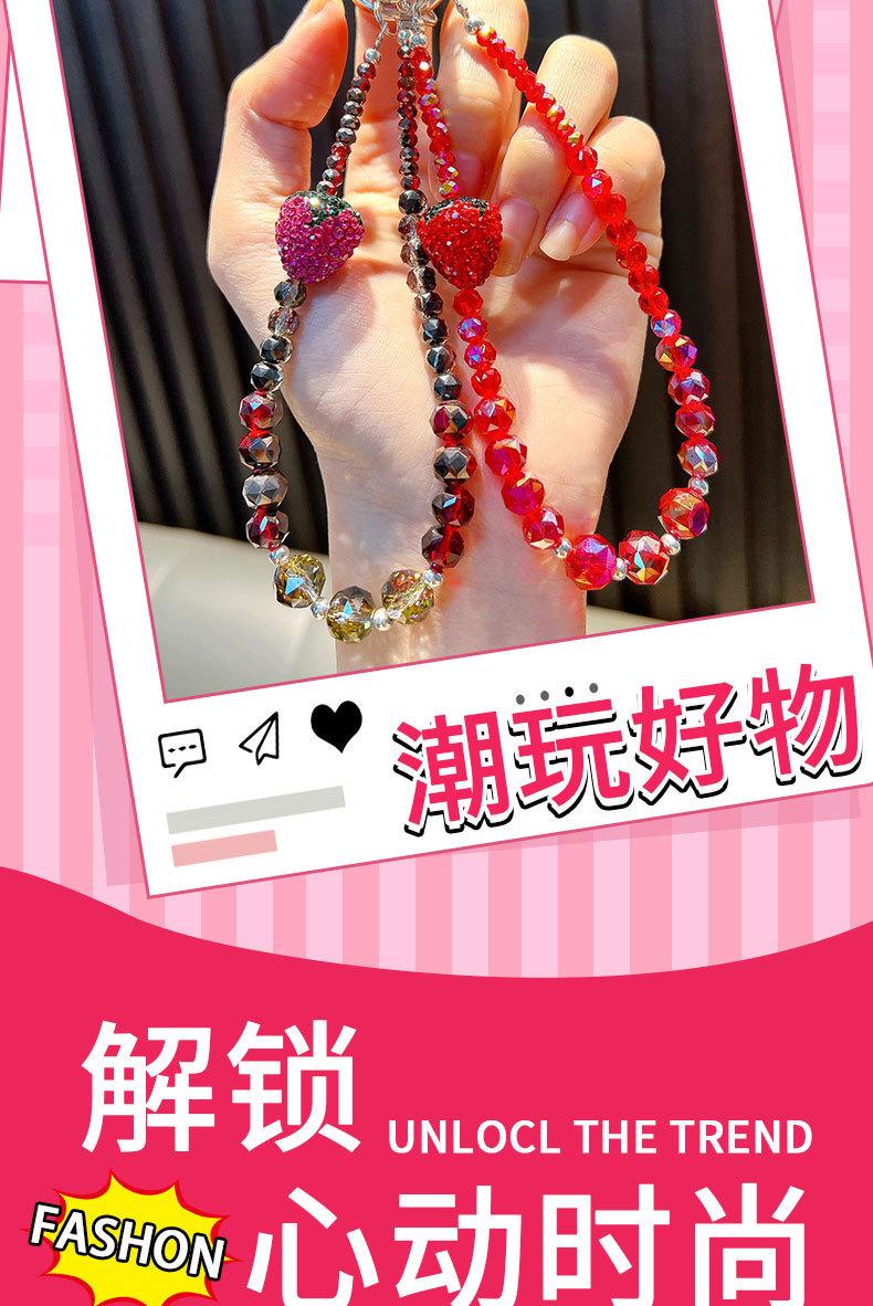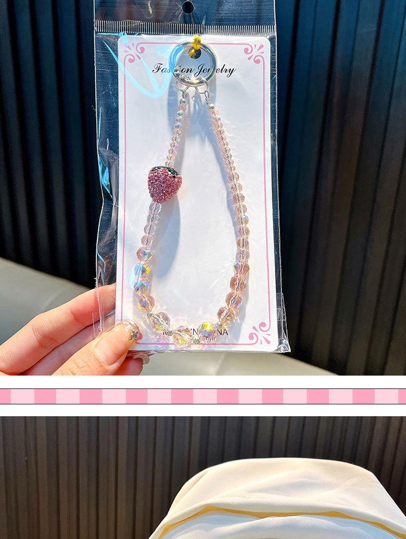Cadena llavero con colgante de fresa incrustada de diamantes para teléfono móvil, cordón para mujer anti-pérdida, adornos colgantes para funda de teléfono móvil, pequeños regalos al por mayor