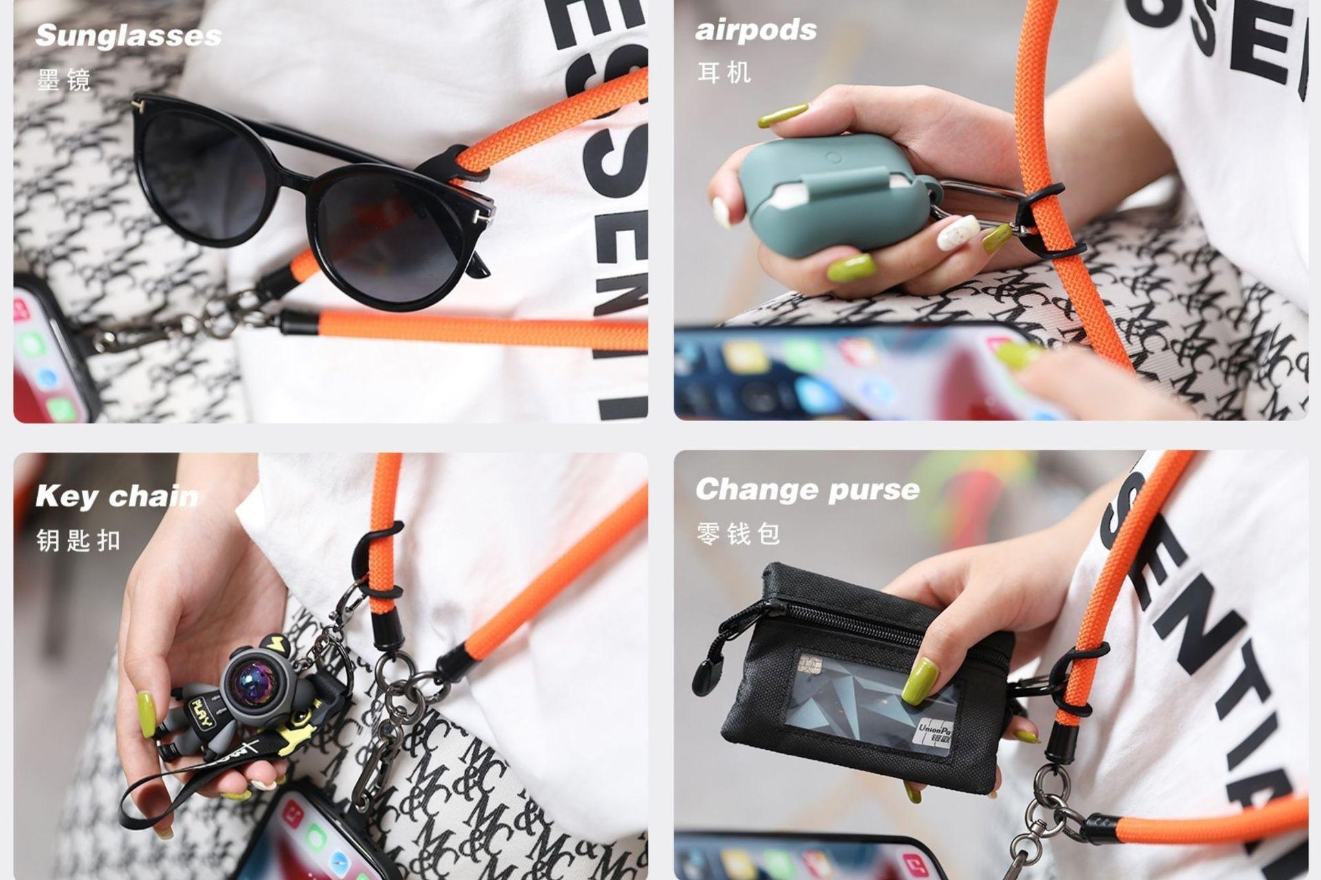 Cordón de 8 mm de grosor para funda de teléfono móvil, junta telescópica ajustable para teléfono móvil, cordón para colgar en el cuello antipérdida para exteriores