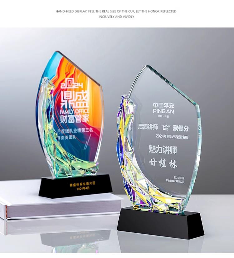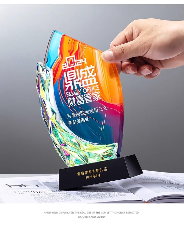 Trofeo de cristal creativo, nuevo y colorido de alta gama, recuerdo empresarial, premio de aniversario para empleados destacados, medalla de honor