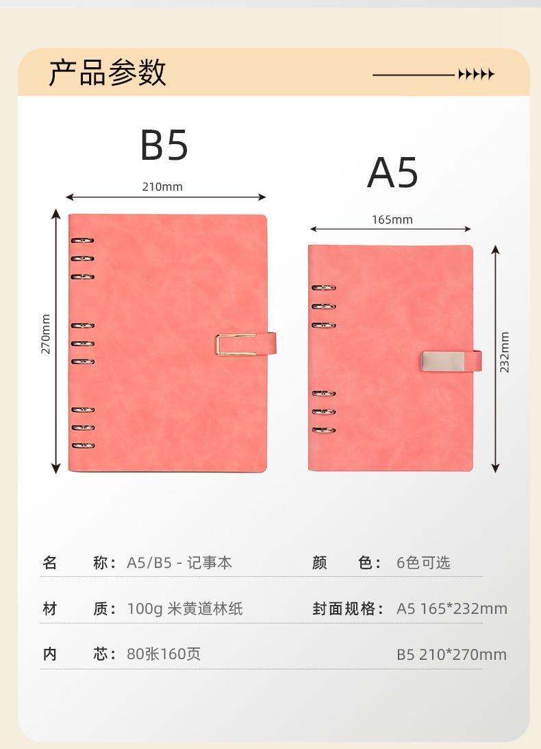 Cuaderno de hojas sueltas A5, cuaderno B5 para oficina, cuaderno A6 desmontable, logotipo personalizado imprimible, venta al por mayor