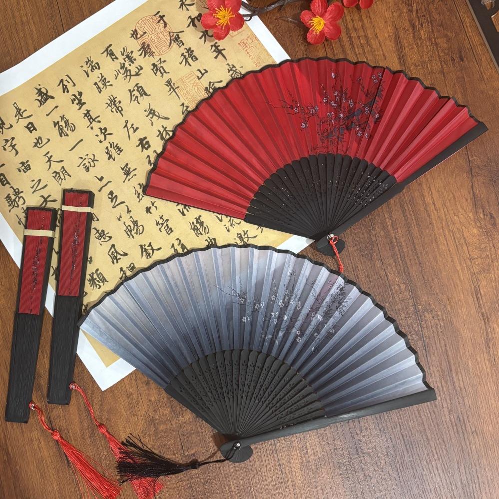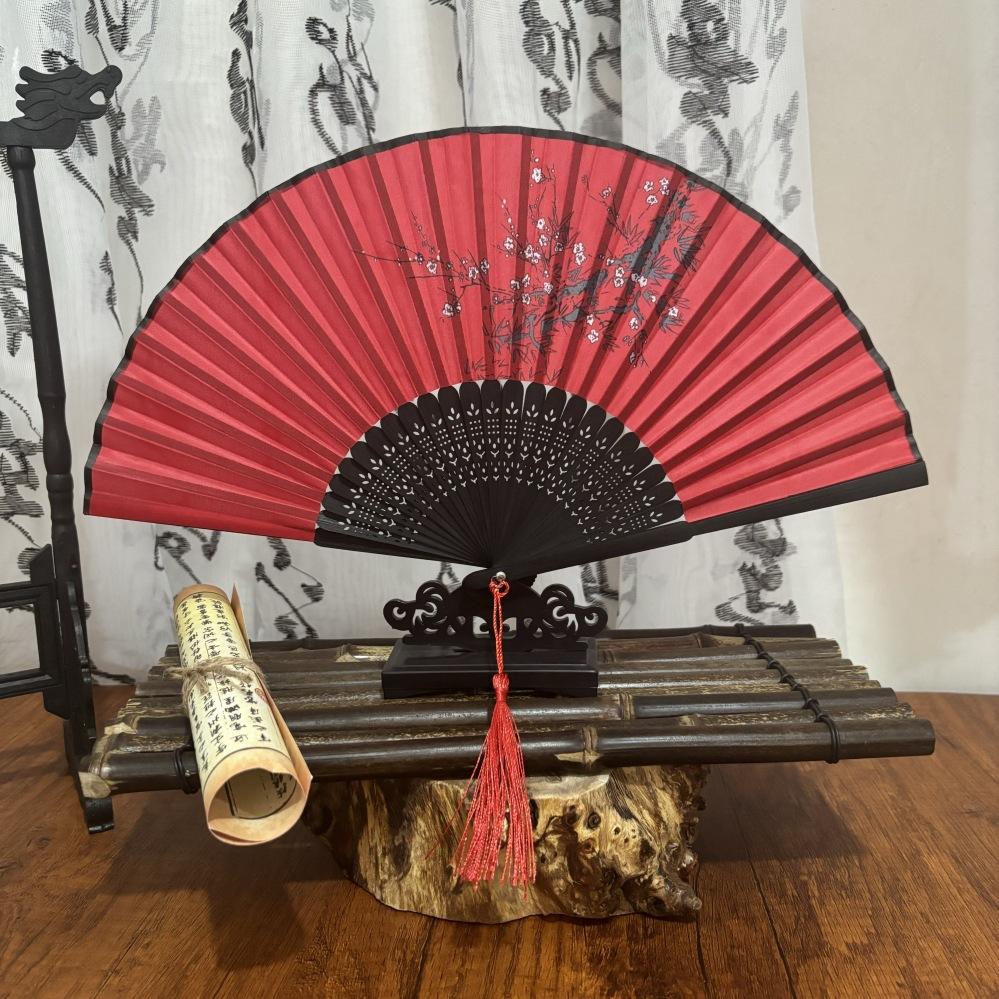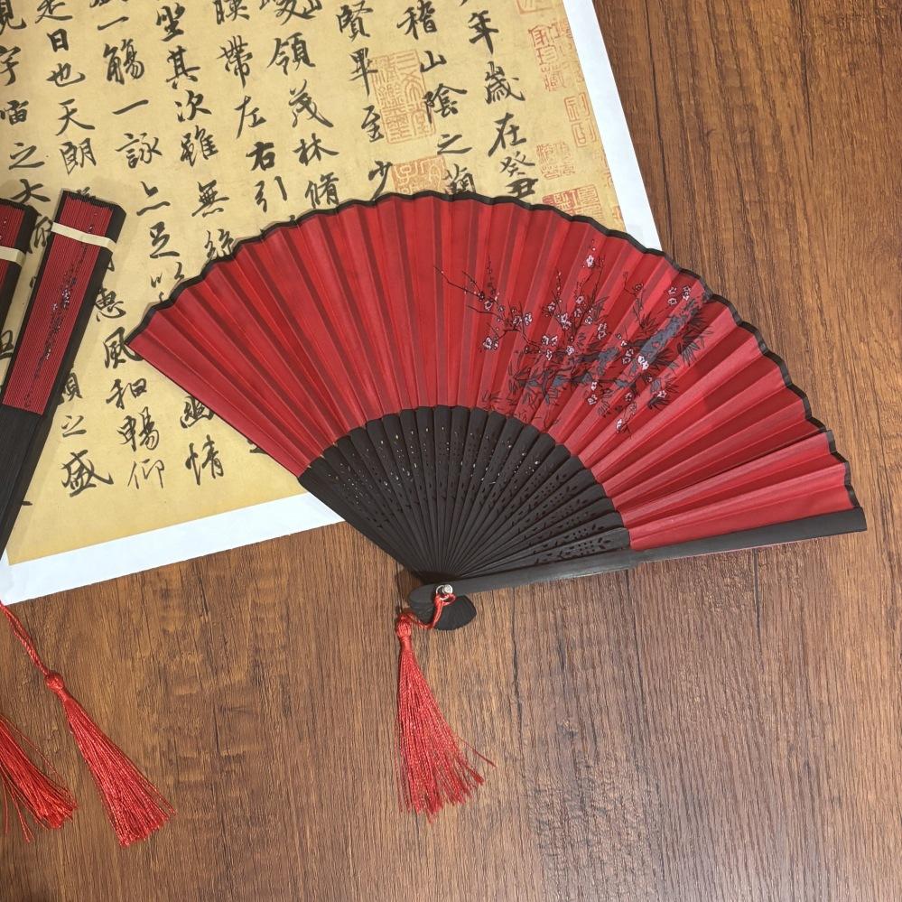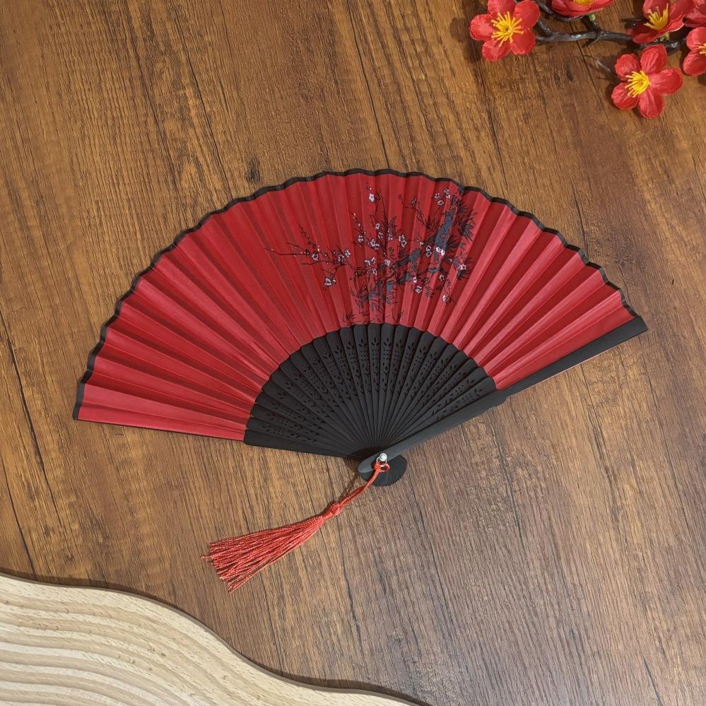 Abanico de Bambú Estilo Antiguo Abanico Plegable para Mujer Abanico Artesanal Danza con Abanico de Danza Rojo Deseo Guofeng Abanico para Mujer Abanico Plegable Rojo