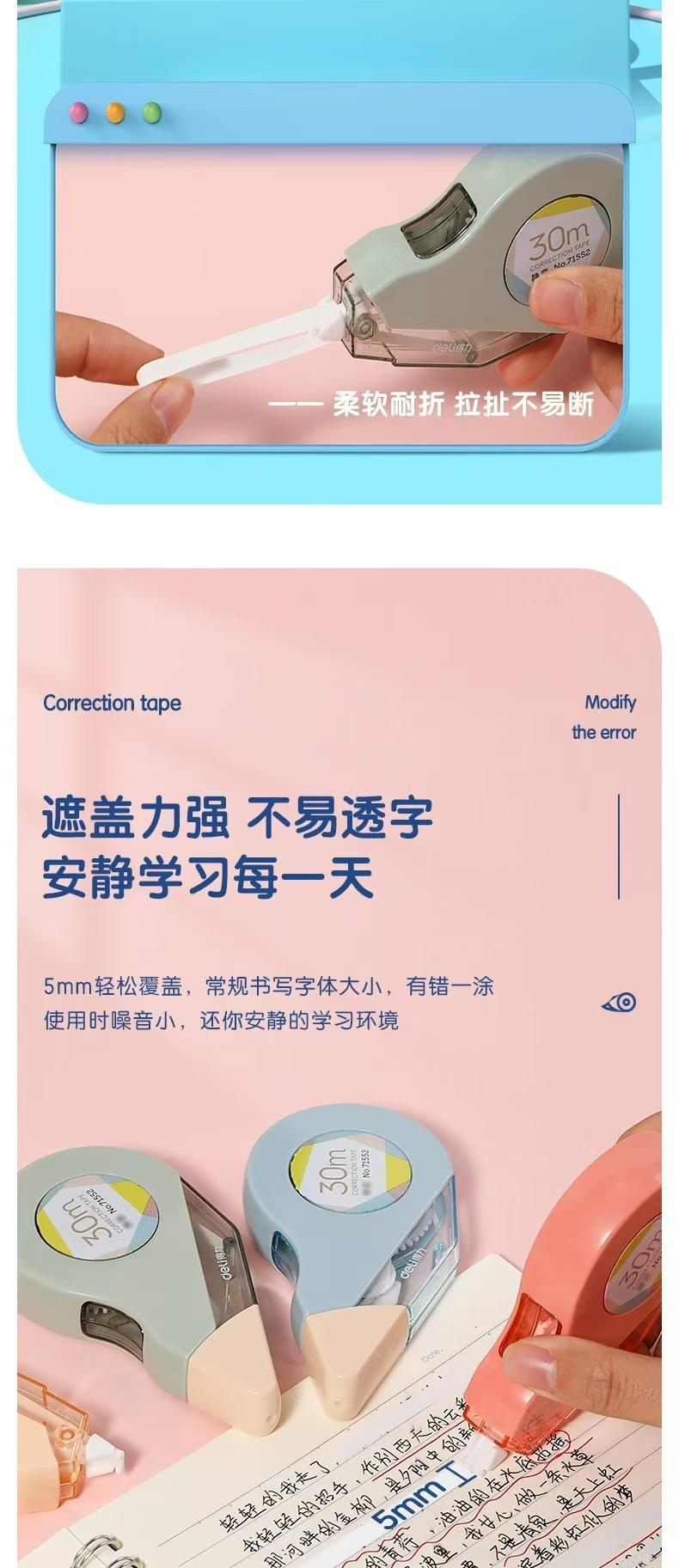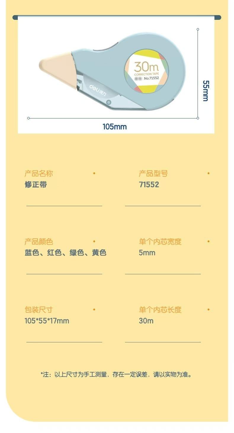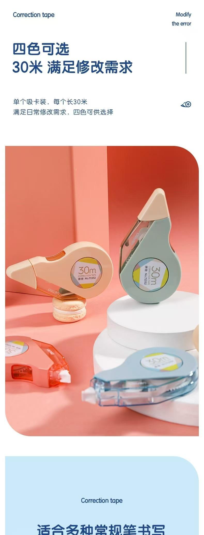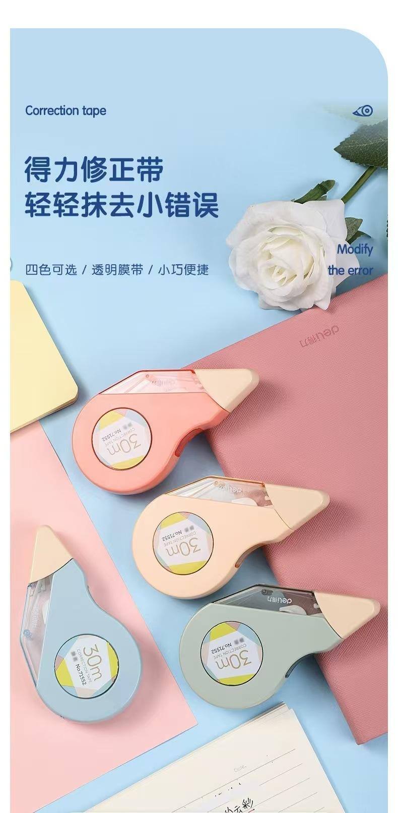 Deli 71551 correction tape_5mm*20m (mixed) (piece), Deli 71552 correction tape_5mm*30m (mixed) (piece)