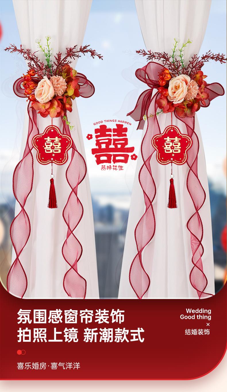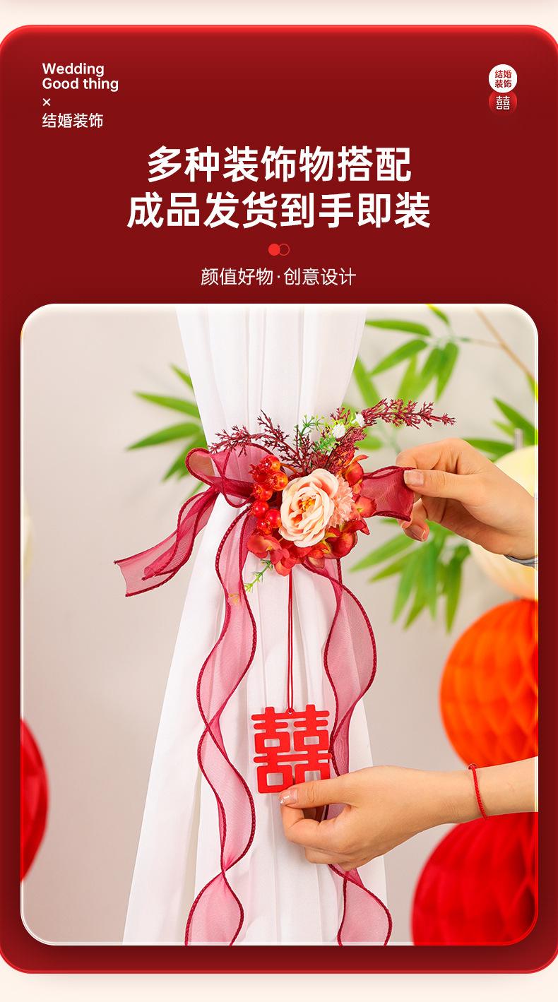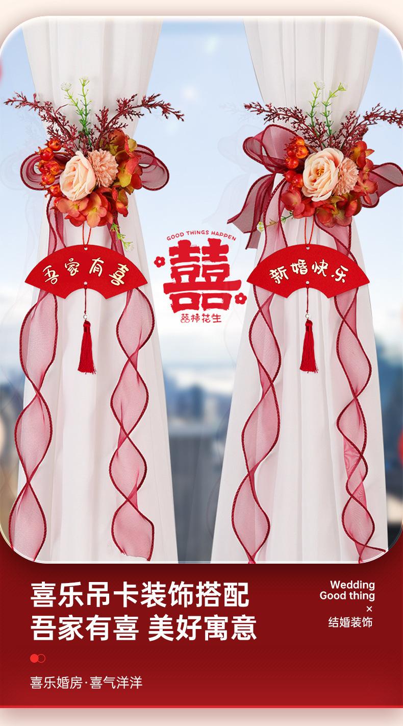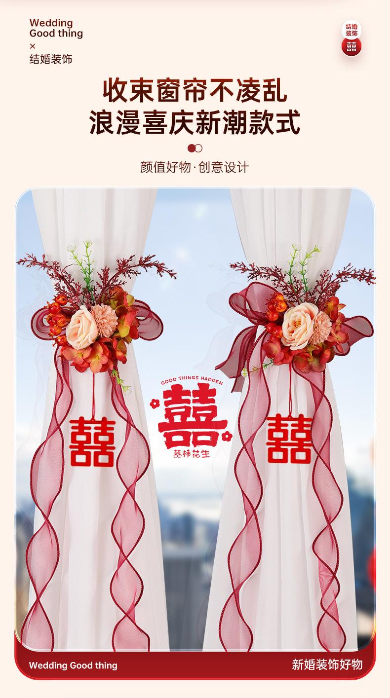 Decoración de cortina de boda para mujer, boda, casa nueva, sala de estar, personaje feliz, correa de flores, decoración colgante, diseño de habitación de boda, traje