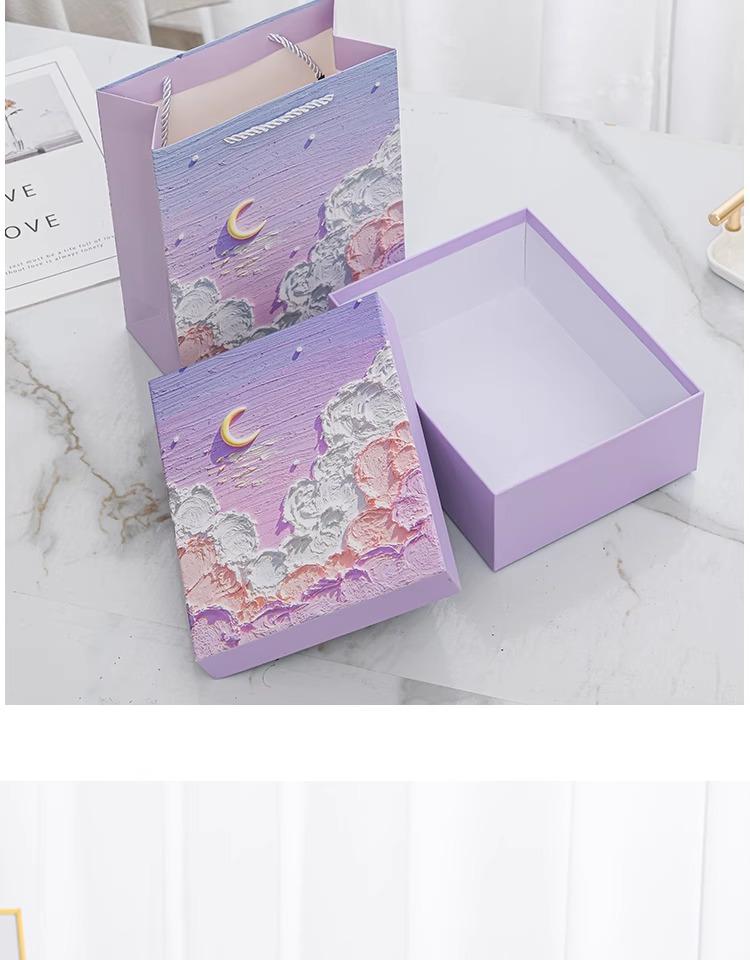 Gift box + raffia + greeting card - starry sky cloud sea small 12.5*12.5*5.7cm, Gift box + raffia + greeting c...