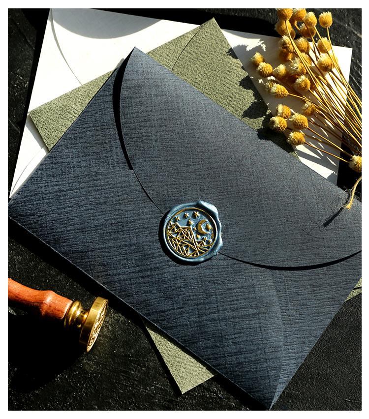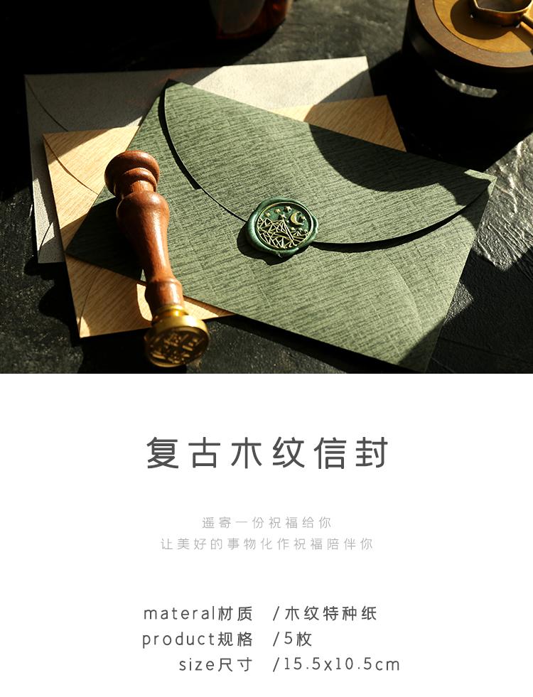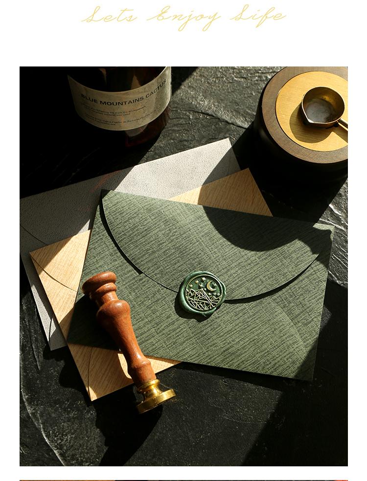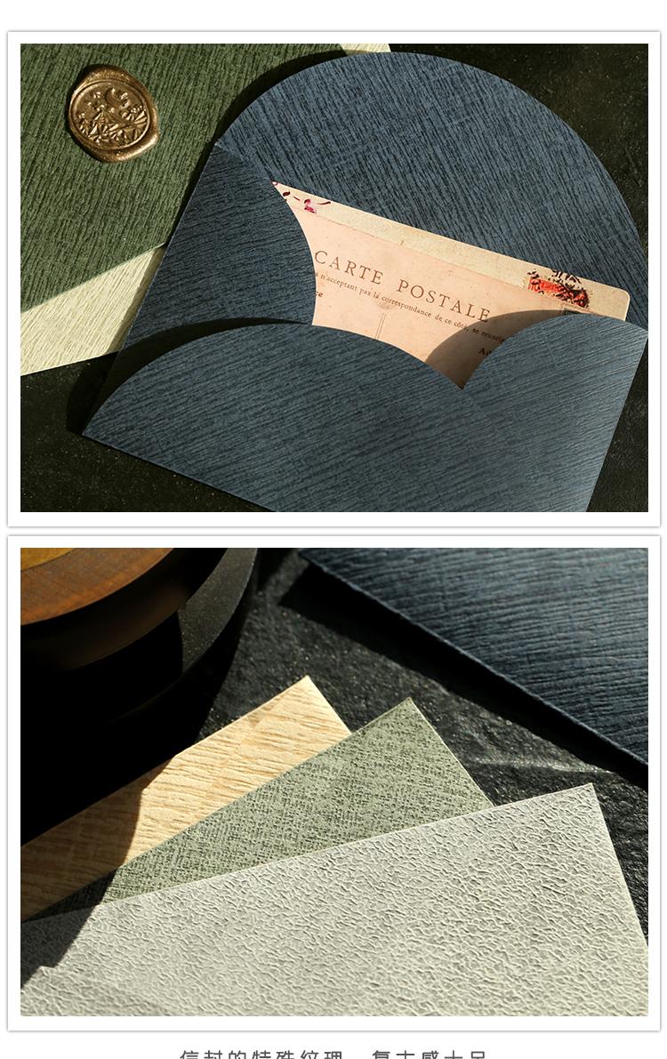 Sobre con pintura al fuego, estilo retro europeo, sencillo, pequeño, con estampado de madera fresca, sobre floreciente, hermosa carta de invitación de boda.
