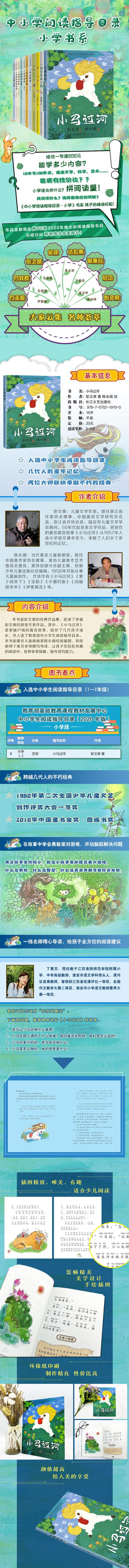 Este libro es una colección de las obras clásicas de Peng Wenxi, incluyendo muchas de sus obras representativas y galardonadas. Entre ellas, "El pequeño poni cruzando el río", una conocida fábula que ha acompañado a varias generaciones de niños en su crecimiento y ha sido seleccionada para el catálogo de orientación lectora del Ministerio de Educación para alumnos de primaria y secundaria. Este libro está ilustrado por el famoso pintor infantil Chen Yongzhen, y la introducción, a cargo del maestro especial Ding Sufen, permite a los niños cultivar el gusto estético y mejorar sus habilidades de lectura y escritura en una lectura relajada e interesante.