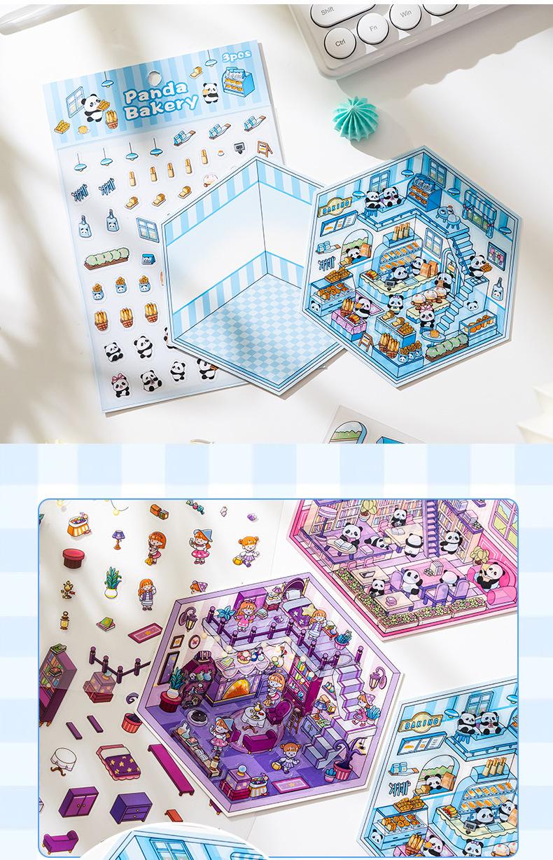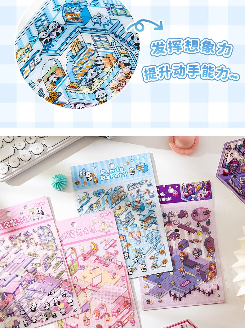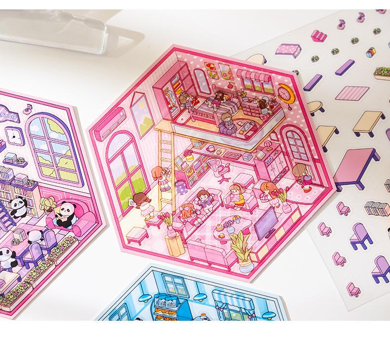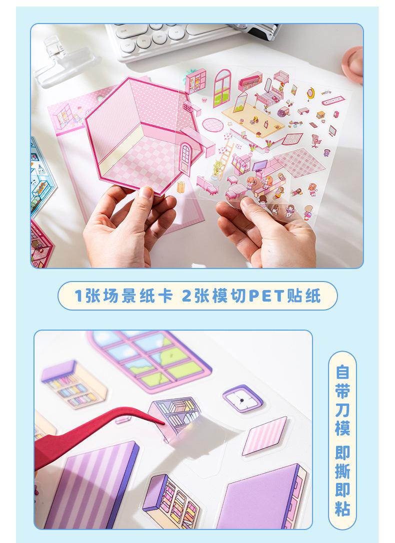 Pegatinas de paisajismo en miniatura estéreo 3D transfronterizas, pegatinas de escena grande, pegatinas pequeñas apiladas hechas a mano para cabañas de negocios