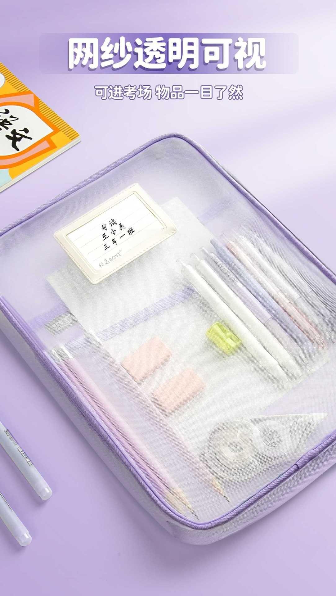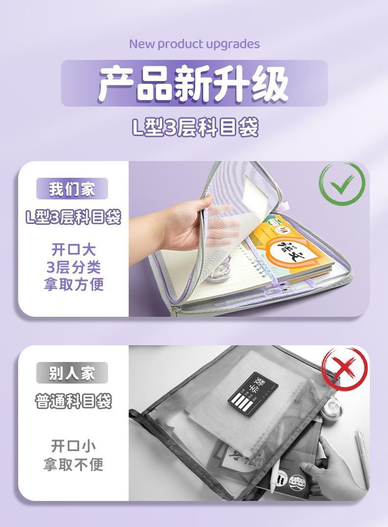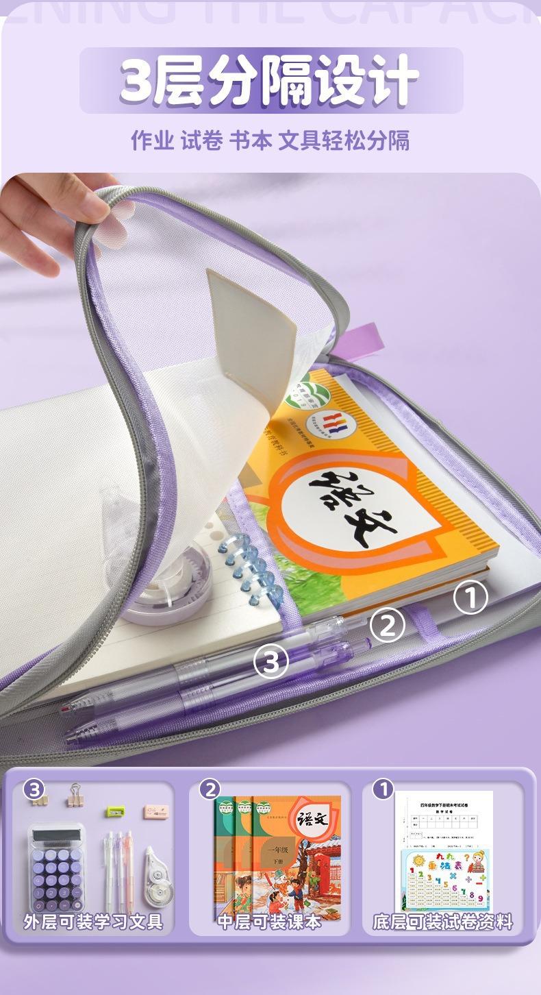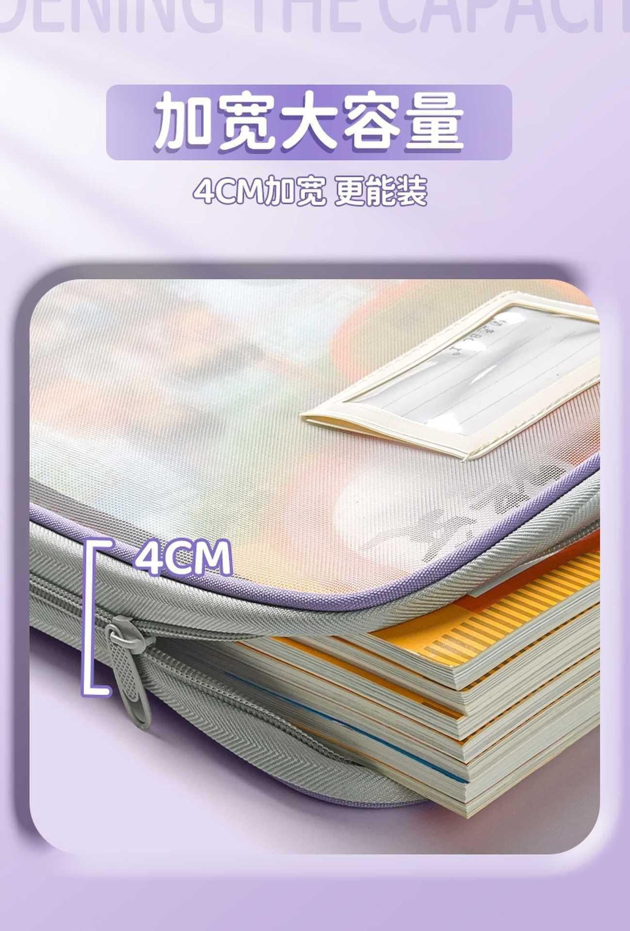 Bolsa de documentos A4 de tres capas, gran capacidad, en forma de L, con abertura grande, bolsa de almacenamiento de malla transparente para estudiantes