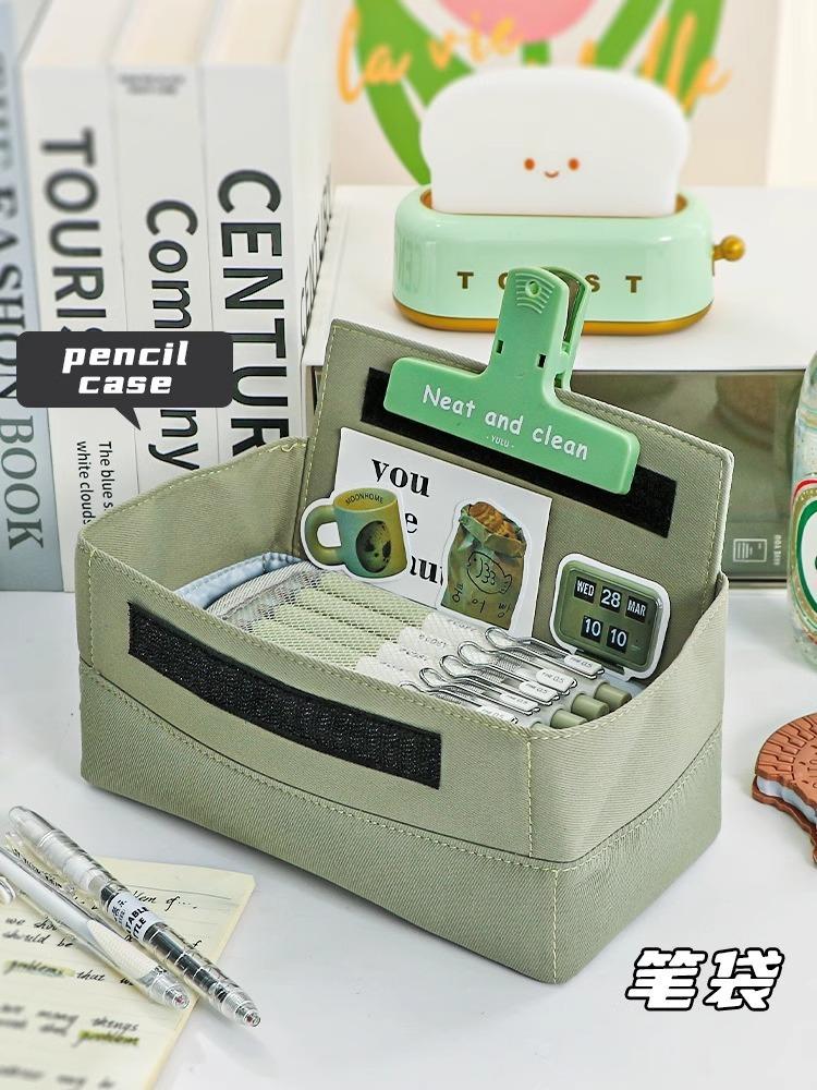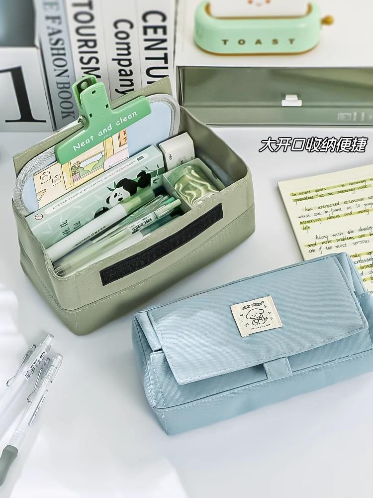 Estuche de lona creativo estilo japonés, estuche de gran capacidad resistente a las manchas para exámenes de estudiantes, bolsa de almacenamiento de papelería, venta al por mayor