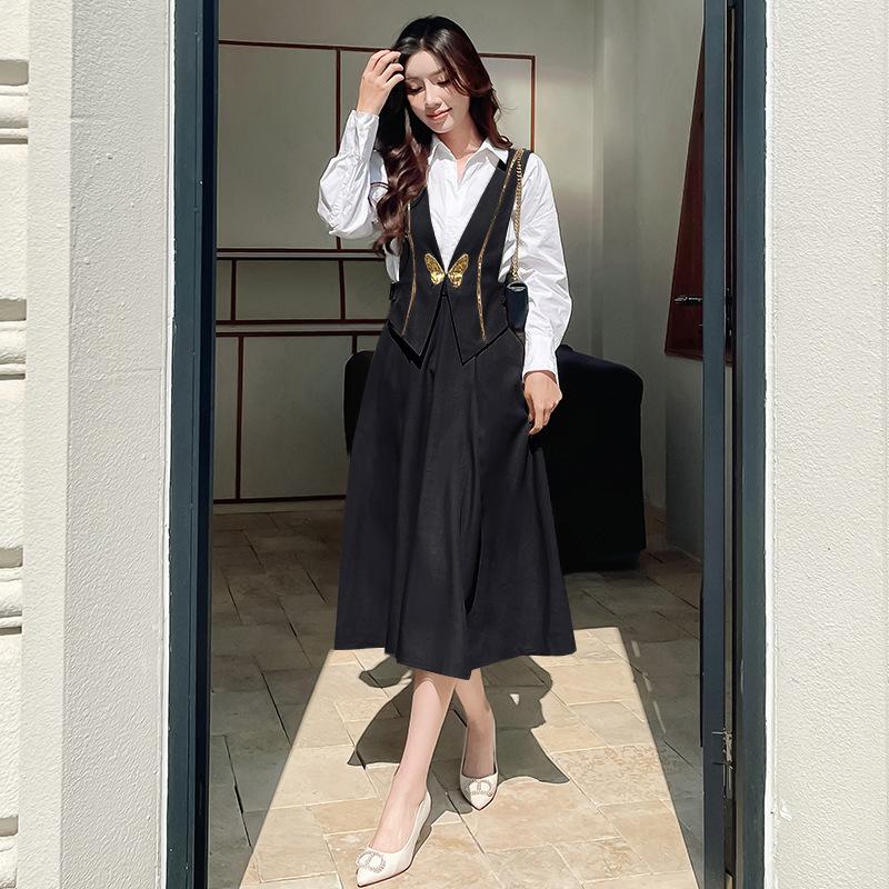 Vestido largo con tirantes de lentejuelas, elegante, estilo hermana real, color liso, primavera 2025