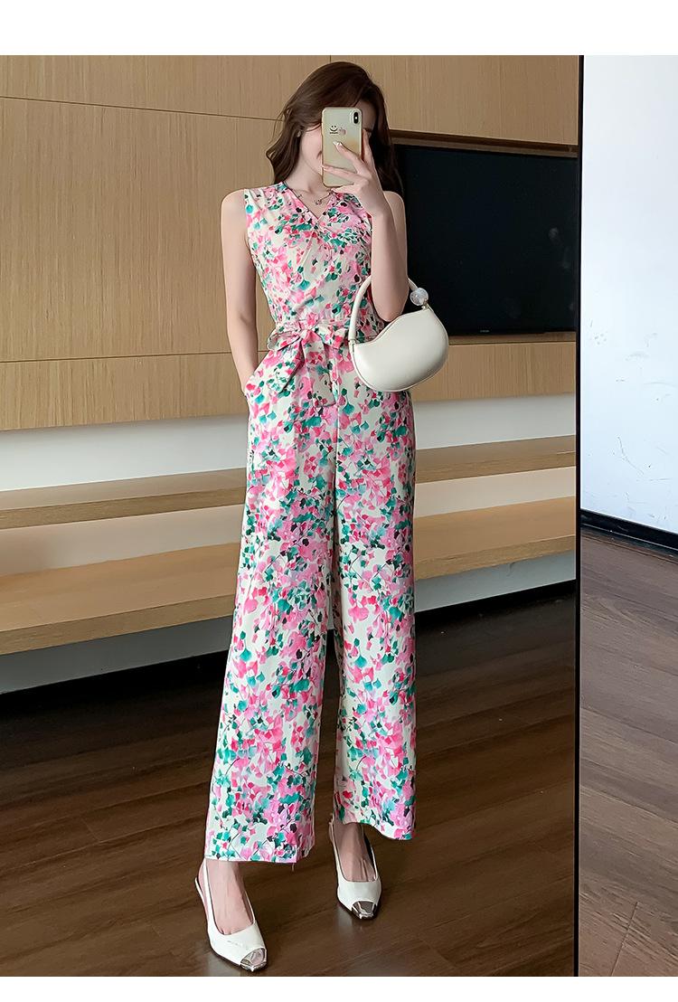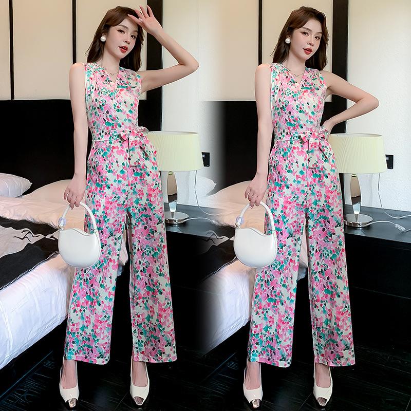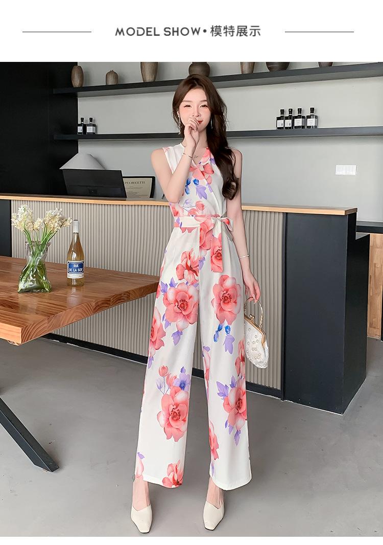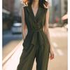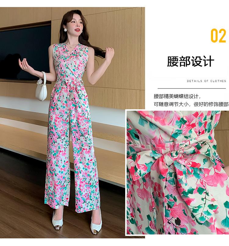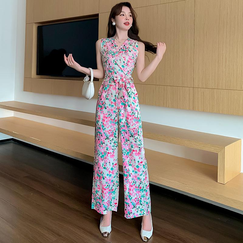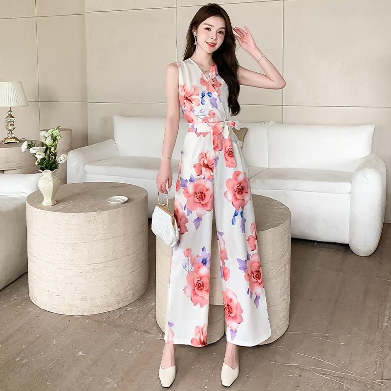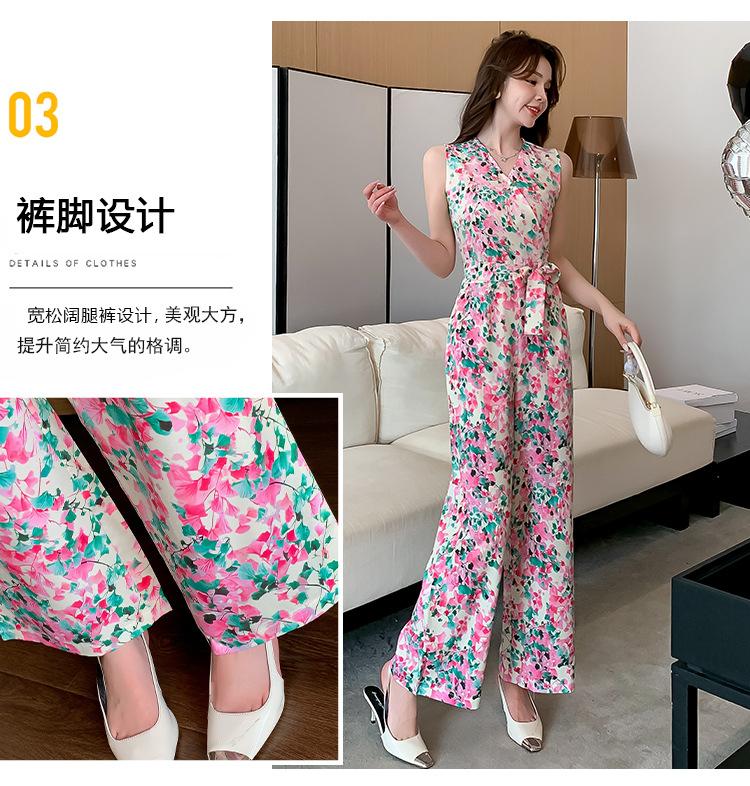 Mono sin mangas de estilo occidental con estampado de tiro real, pantalones de pierna ancha drapeados que adelgazan la cintura, novedad de 2025