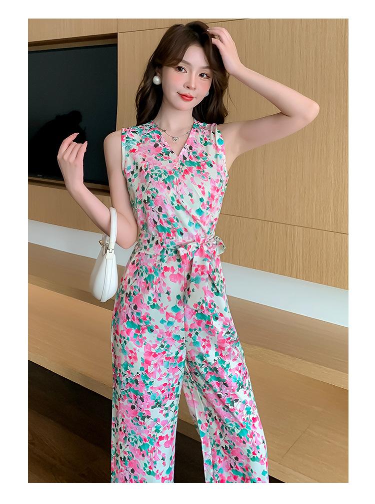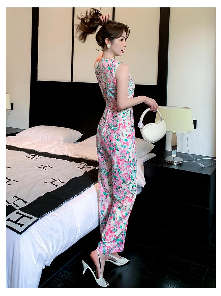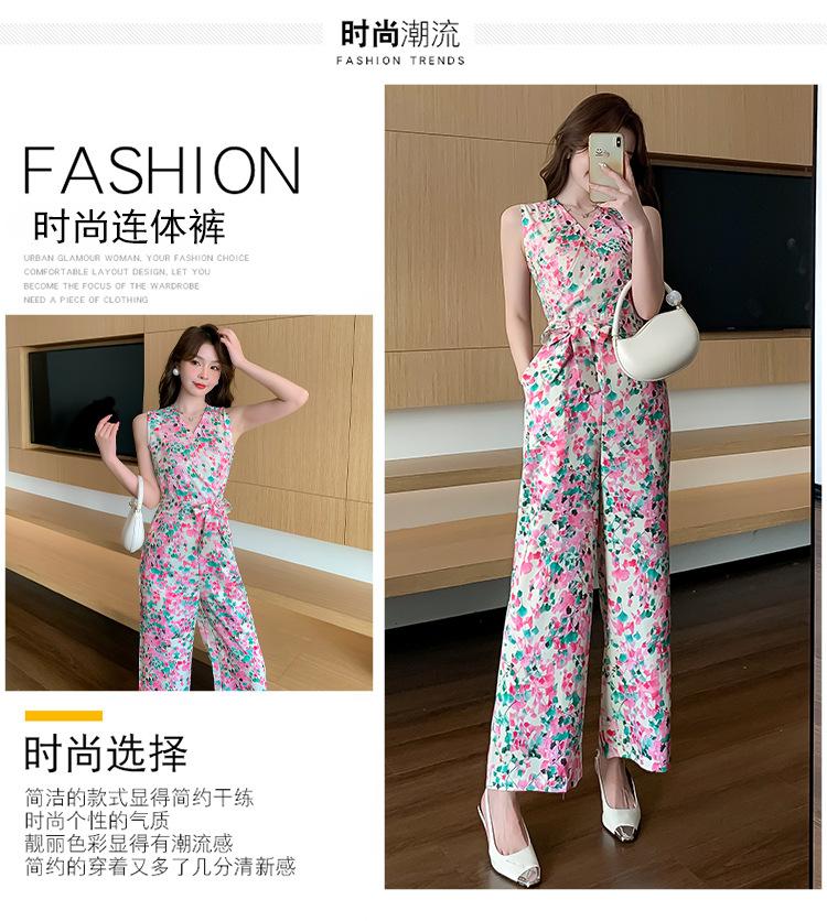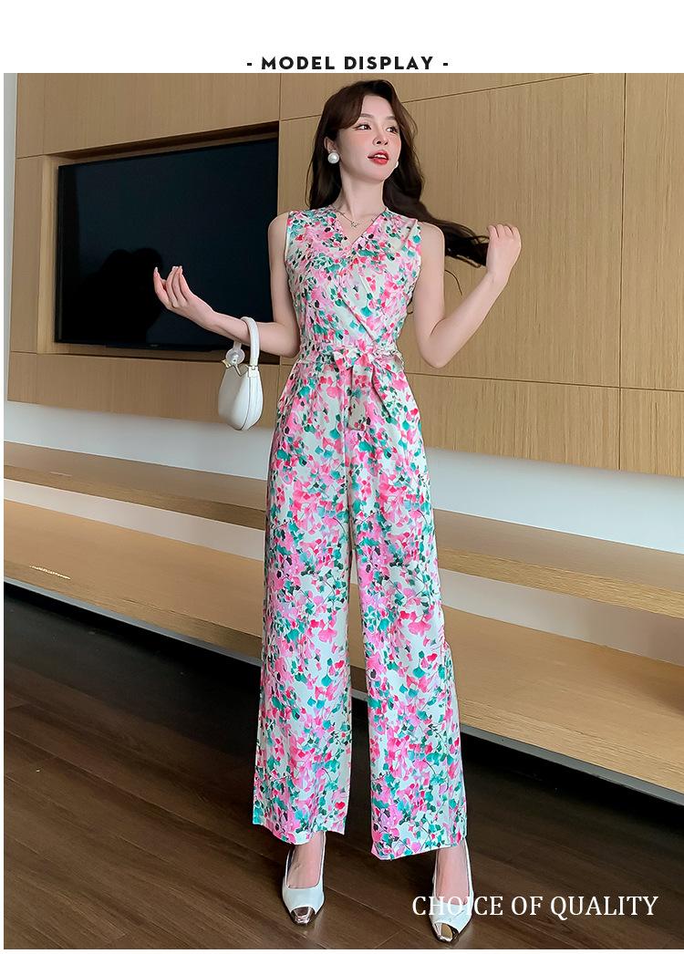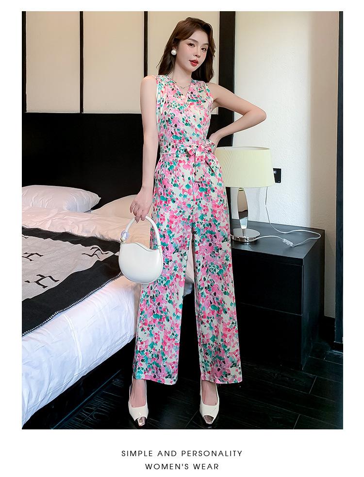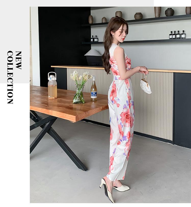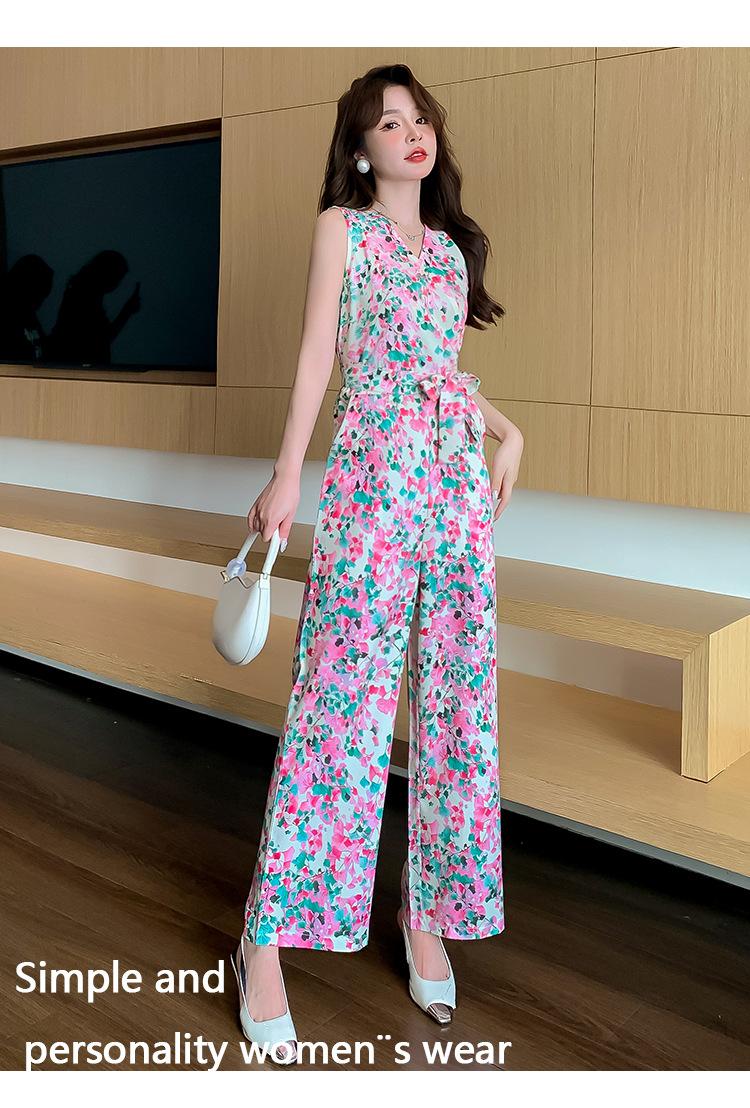 Mono sin mangas de estilo occidental con estampado de tiro real, pantalones de pierna ancha drapeados que adelgazan la cintura, novedad de 2025