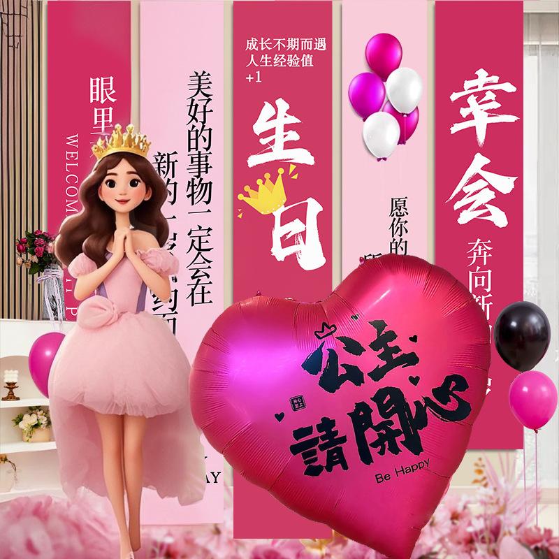 Pink -63 inch princess please happy/rich balloon, Pink Princess Please Happy Birthday suit 1, Pink Princess Pl...