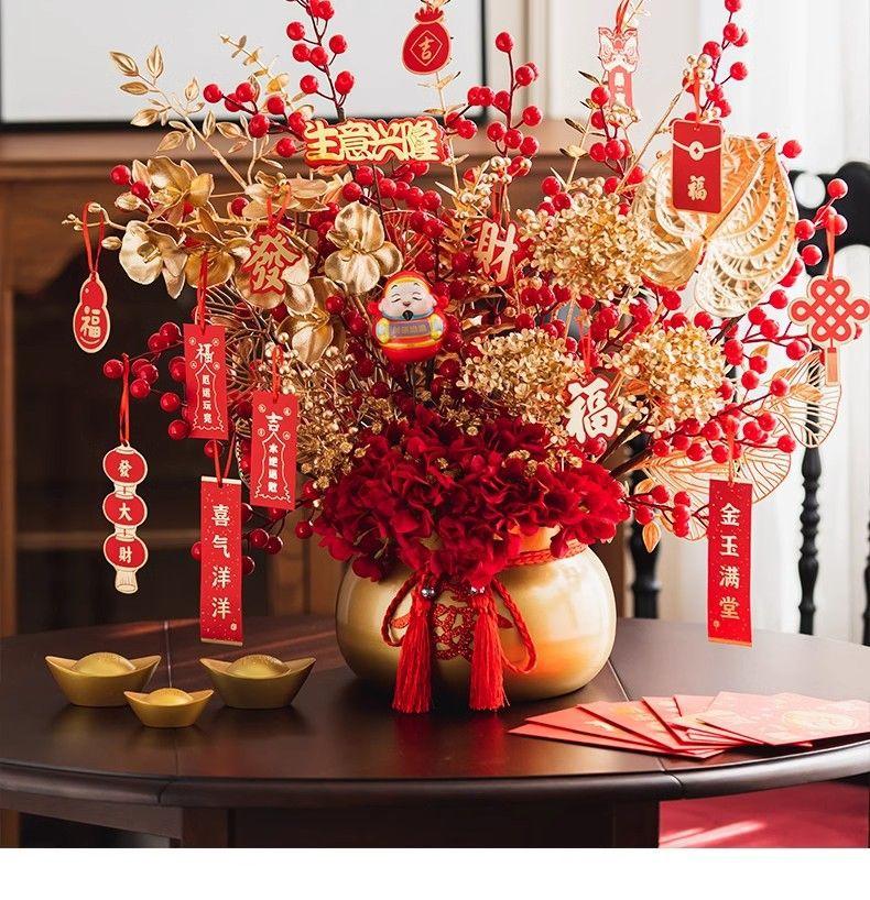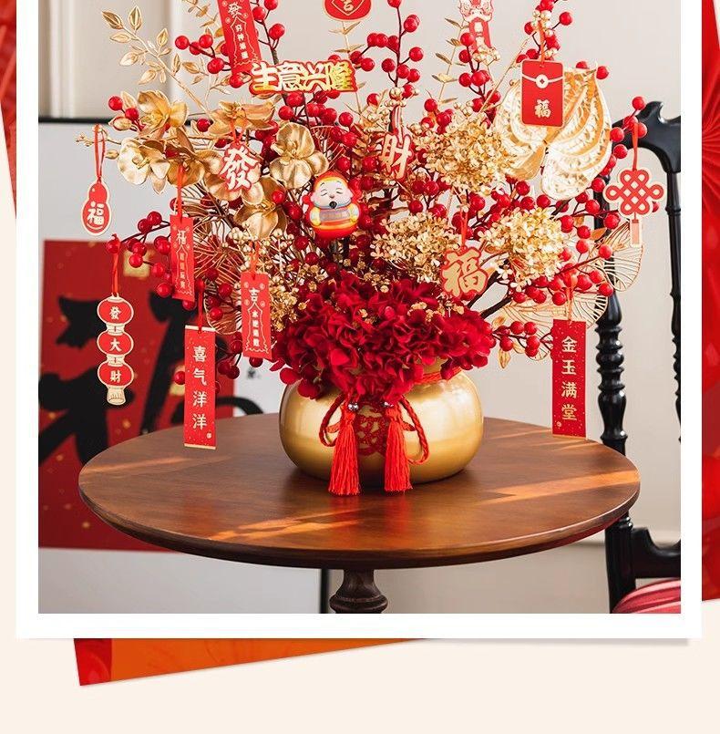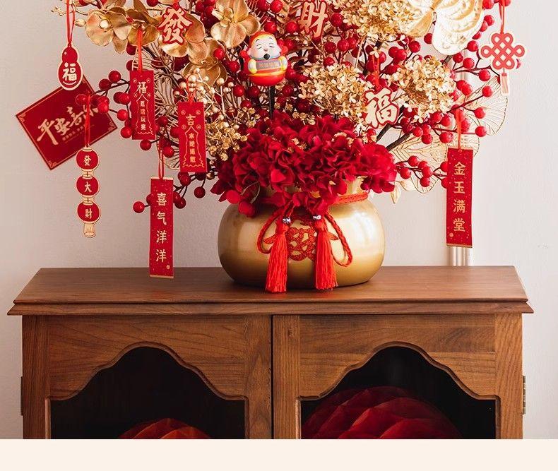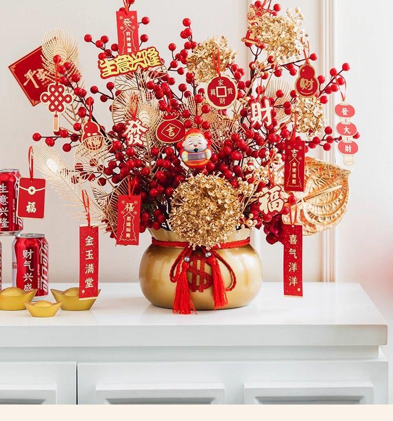 Festival de Primavera, Año Nuevo, Fruta de la Fortuna, Fruta Roja, Flor Artificial, Decoración de Apertura, Cubo, Adornos, Sala de Estar, Regalo de Alegría, Mudanza