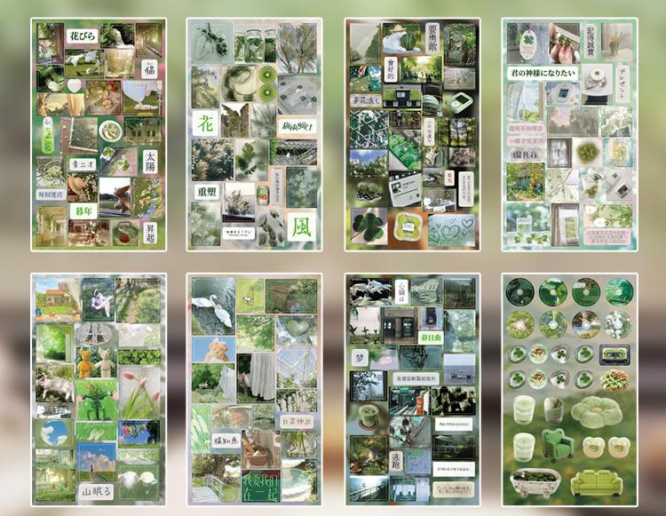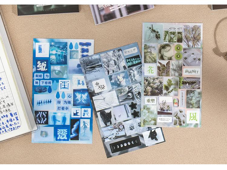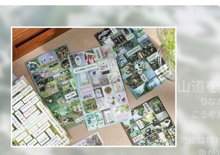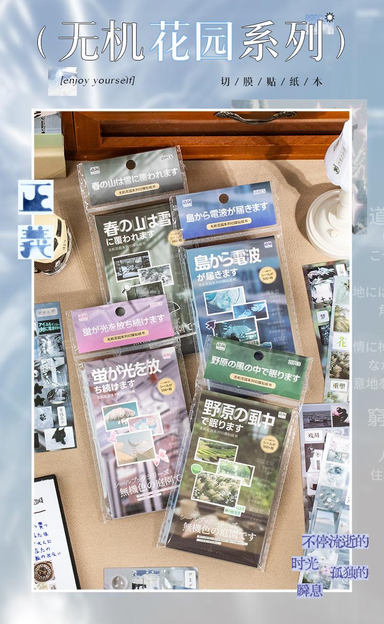 Pegatina de película de corte inactivo de idioma, esta serie de jardín inorgánico, material de viento antiguo temprano, cuenta manual, tarjeta trasera de teléfono móvil, collage de decoración de bricolaje