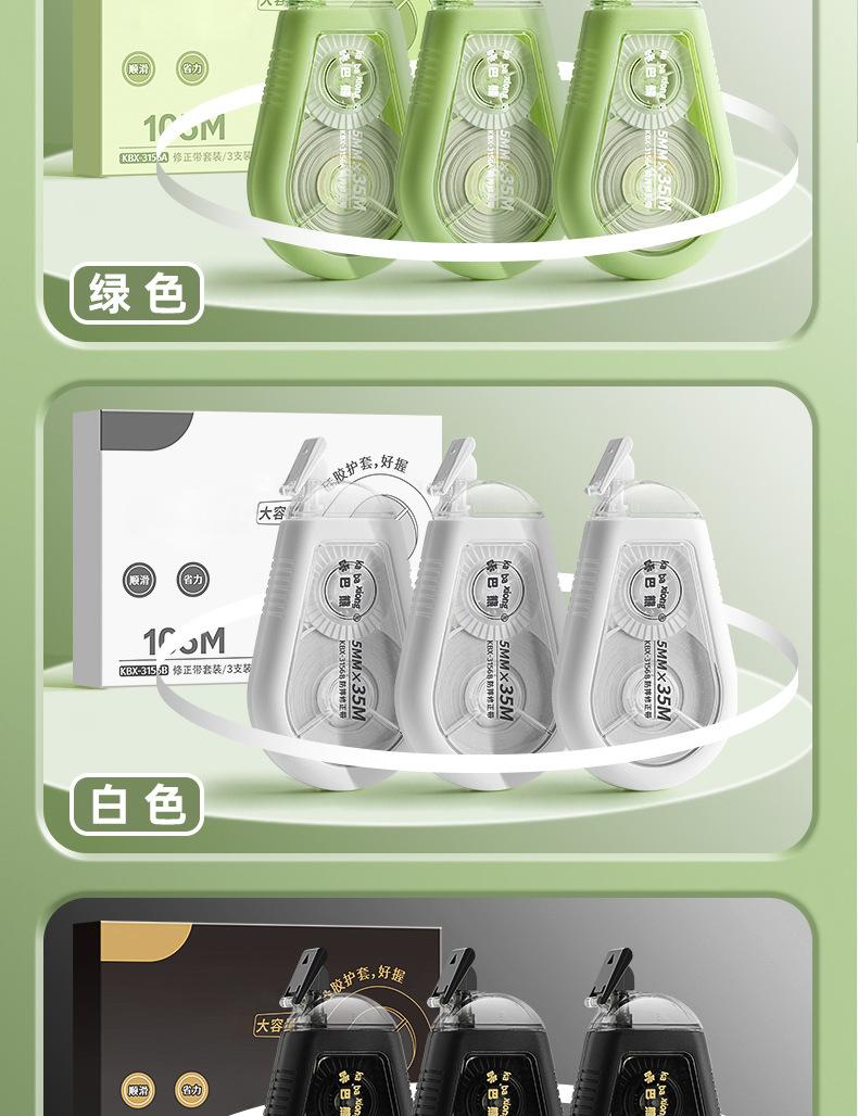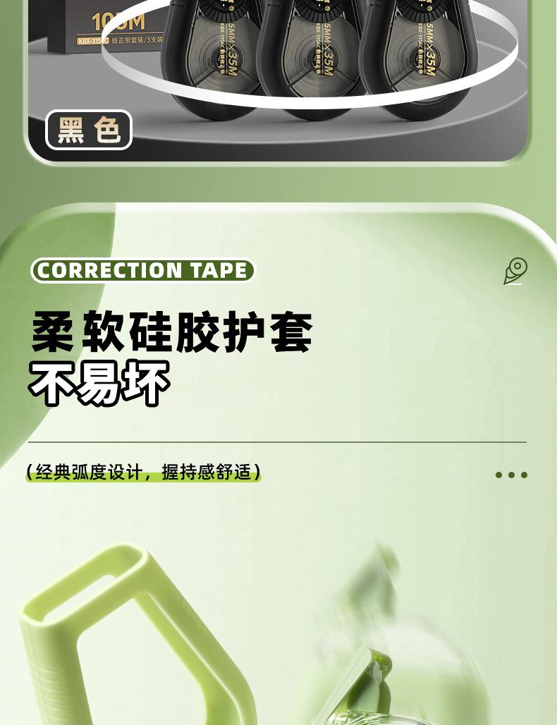 Large-capacity anti-fall correction tape [black] 3-pack, Large-capacity anti-fall correction tape [white] 3-pa...