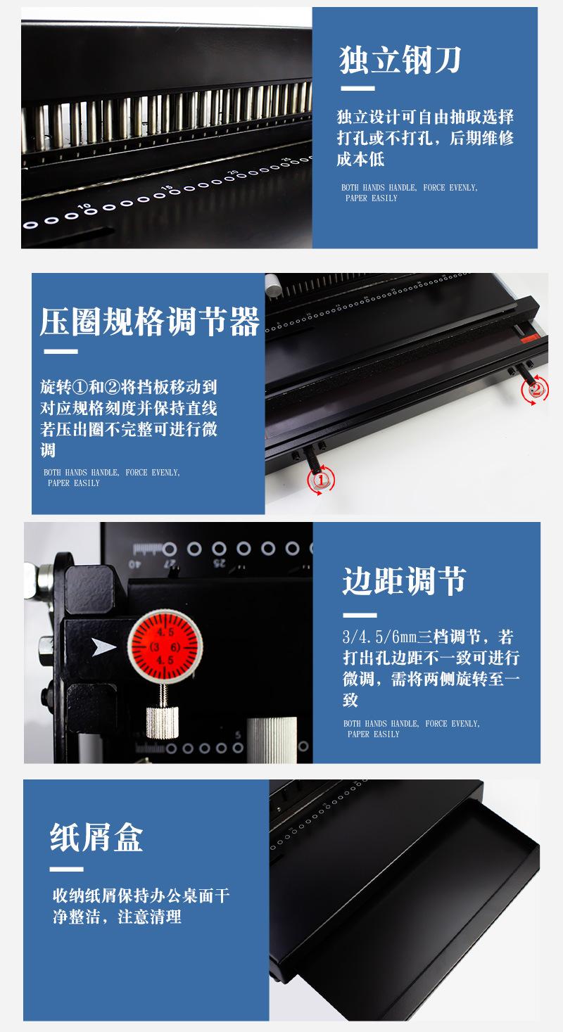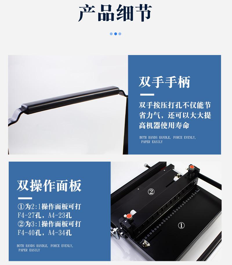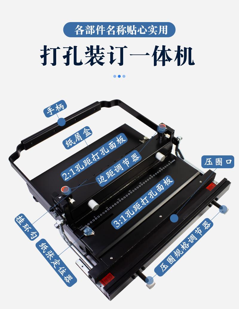 Máquina de encuadernación manual con anillos de hierro pesados de agujeros redondos 2:Máquina perforadora de 1 agujero Calendario de escritorio A4 Máquina de doble bobina de 34 agujeros 3:1 encuadernación