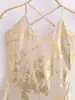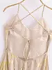 Vestido largo elegante con tirantes de metal bronceado para mujer, estilo europeo y americano, primavera y verano 2024