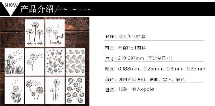 Nueva plantilla de pintura de diente de león de Amazon, plantilla de pintura pequeña y fresca, conjunto de plantillas de pintura hueca al por mayor